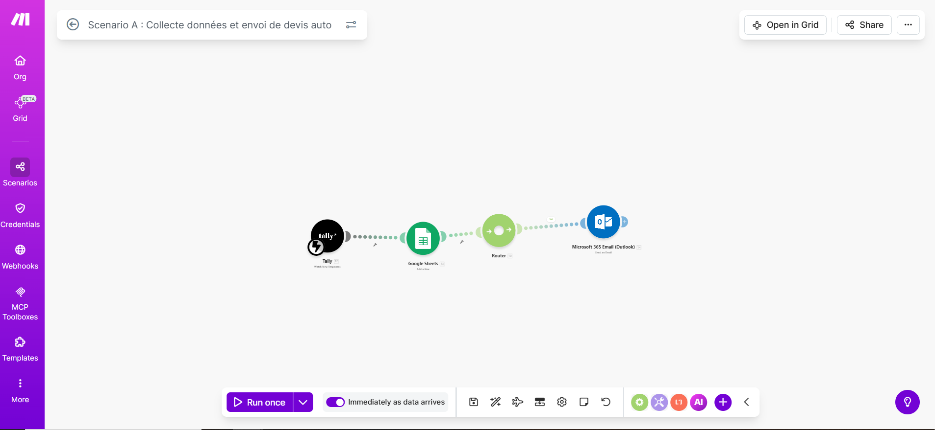 - Orchestration No-Code & Workflows (Le Système Nerveux) J'utilise les outils les plus puissants du marché (Make.com, Zapier, n8n) pour faire communiquer vos applications entre elles.