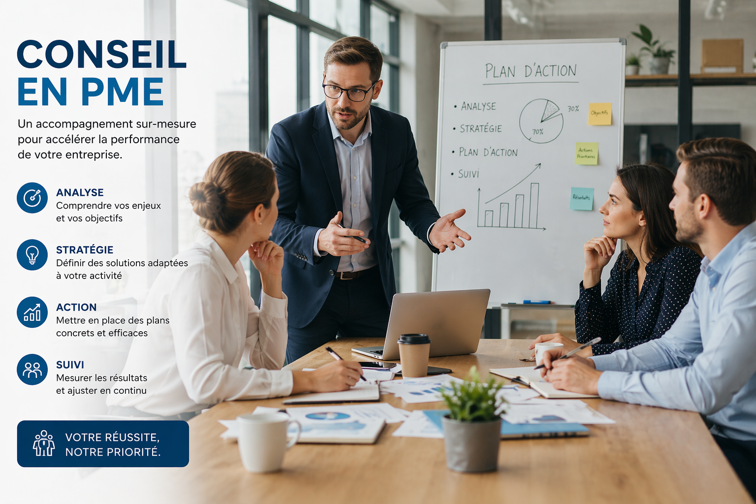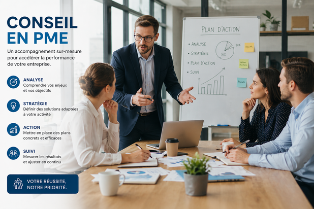 Consultant spécialisé dans l’accompagnement des PME, j’interviens sur des missions d’analyse stratégique, structuration d’offres et optimisation de la performance opérationnelle. J’accompagne les dirigeants dans leurs prises de décision . -