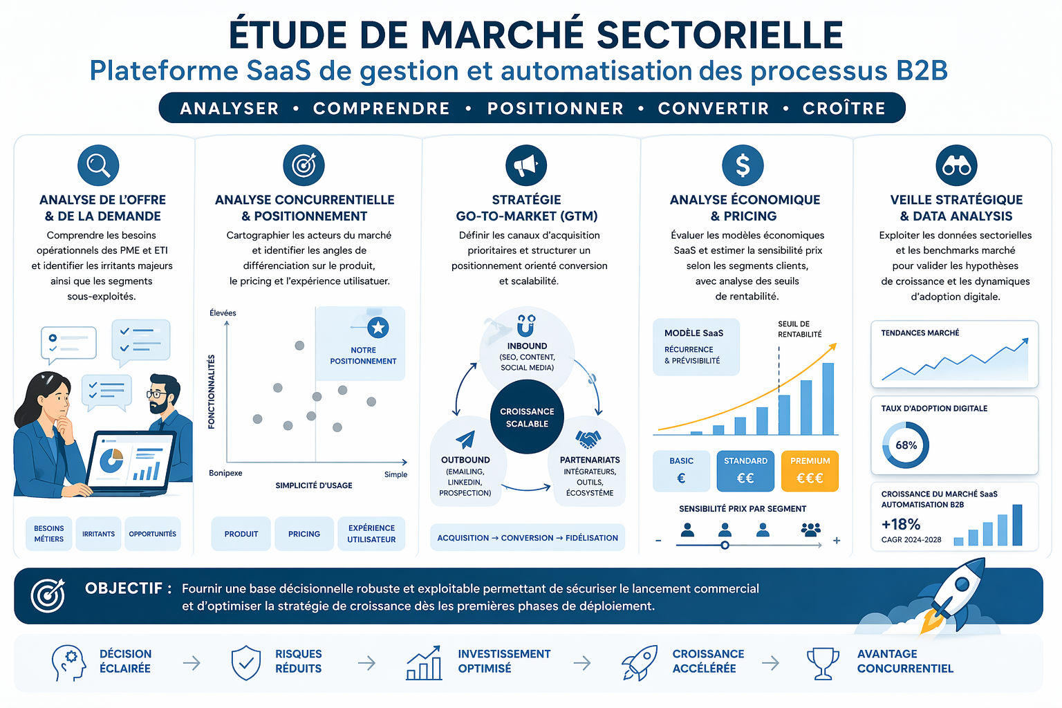Analyse approfondie des dynamiques de marché Évaluation des opportunités et des risques Structuration de modèles économiques robustes Élaboration de stratégies de développement cohérentes