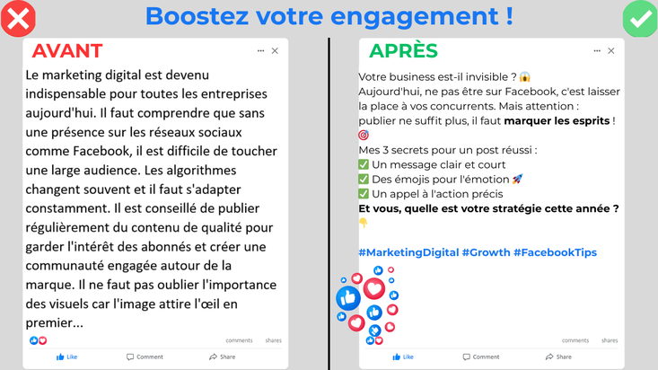Je vais transformer vos textes en posts facebook clairs et engageants