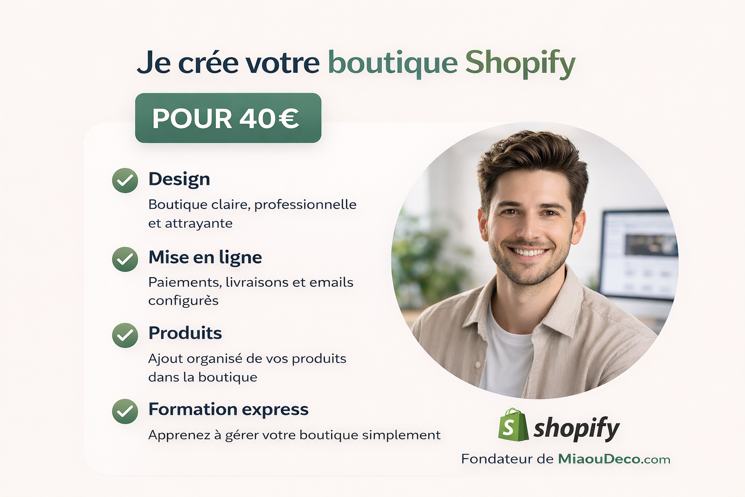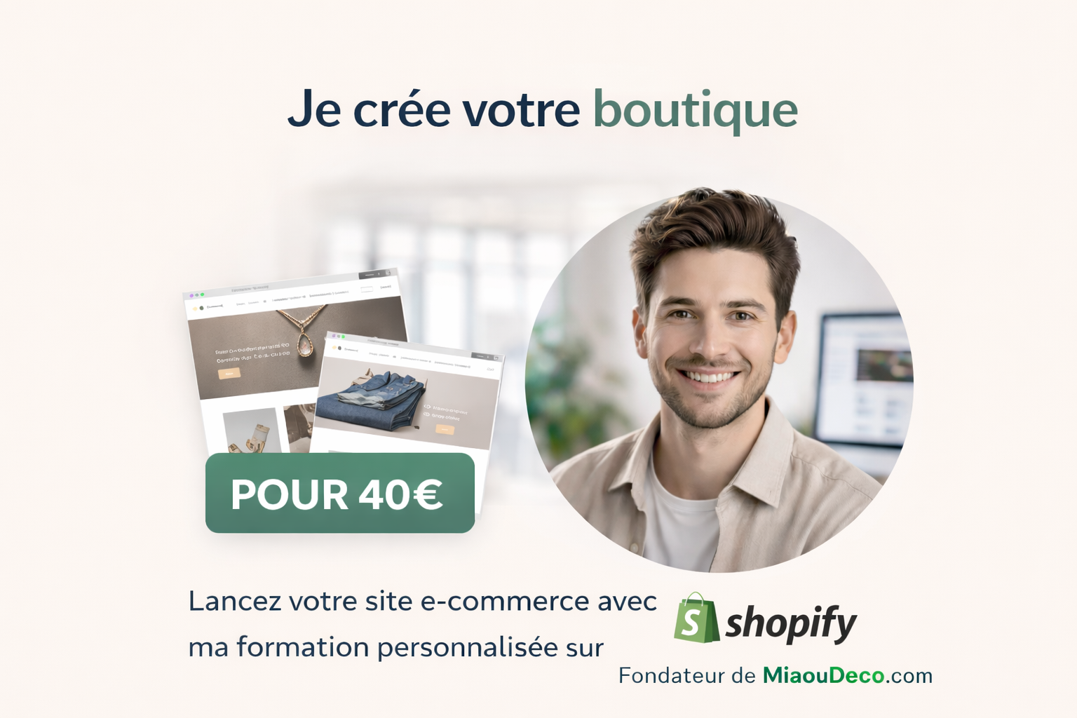 Créateur de sites Shopify, je propose des solutions simples et efficaces pour lancer une boutique en ligne sans prise de tête. Idéal pour les entrepreneurs qui veulent démarrer rapidement avec une base solide.