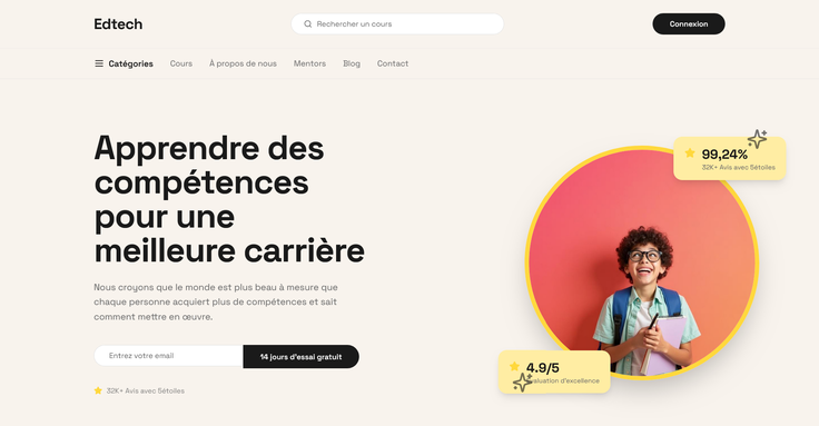 Grâce à une expérience solide en développement front-end puis en design UI/UX fruit de plus de trois ans d'études et d'exercice, j'ai développé un flux de travail très efficace qui priorise la rapidité d'exécution et la précision. Je crois fermement qu'un design web professionnel est l'investissement initial essentiel pour tout succès durable.