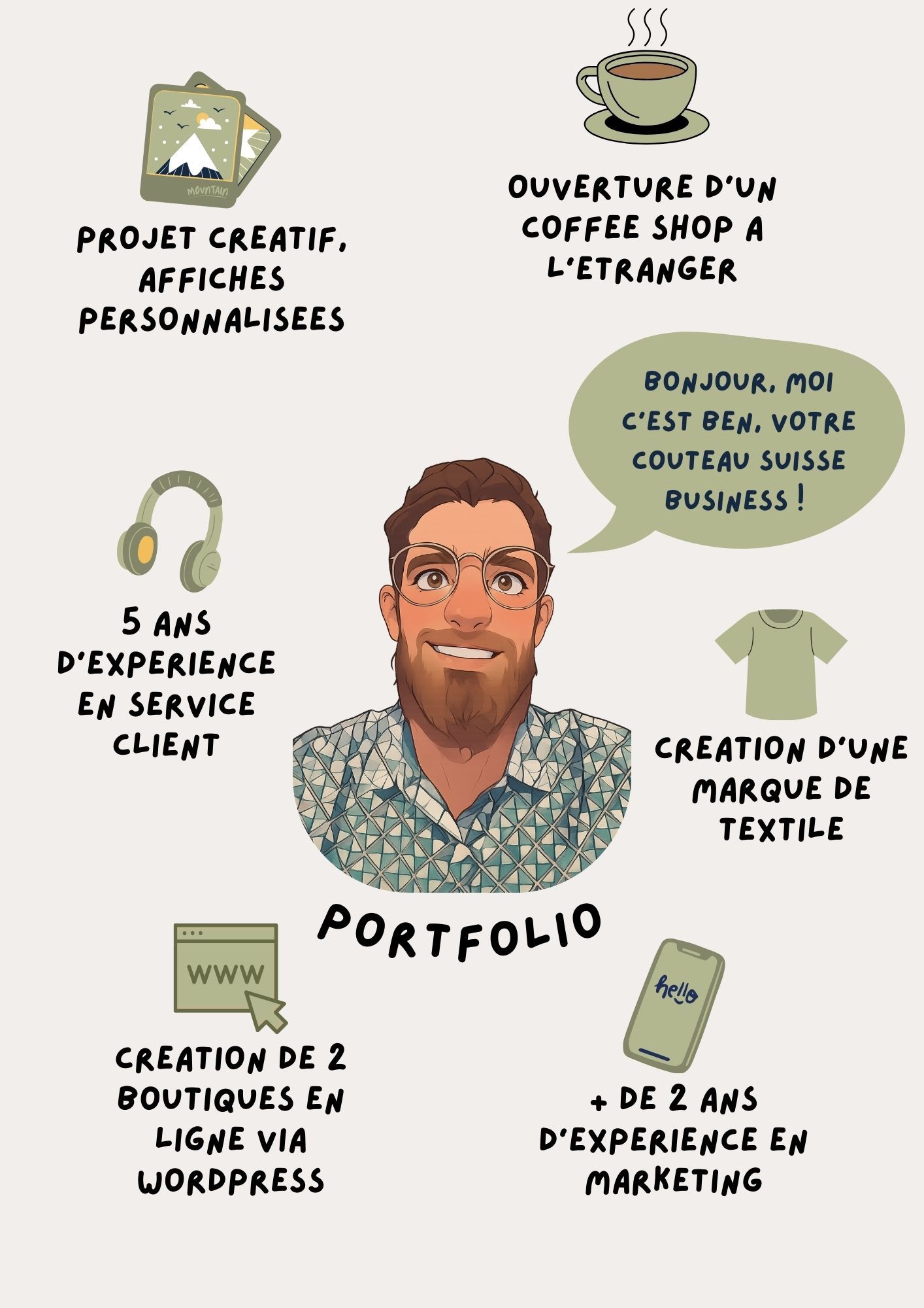 - Création d'une marque de vêtements en ligne - Ouverture d'un coffee shop à l'étranger - Création de plusieurs sites Internet - Création d'affiches personnalisées commercialisées en France et à l'étranger - Freelance Web -