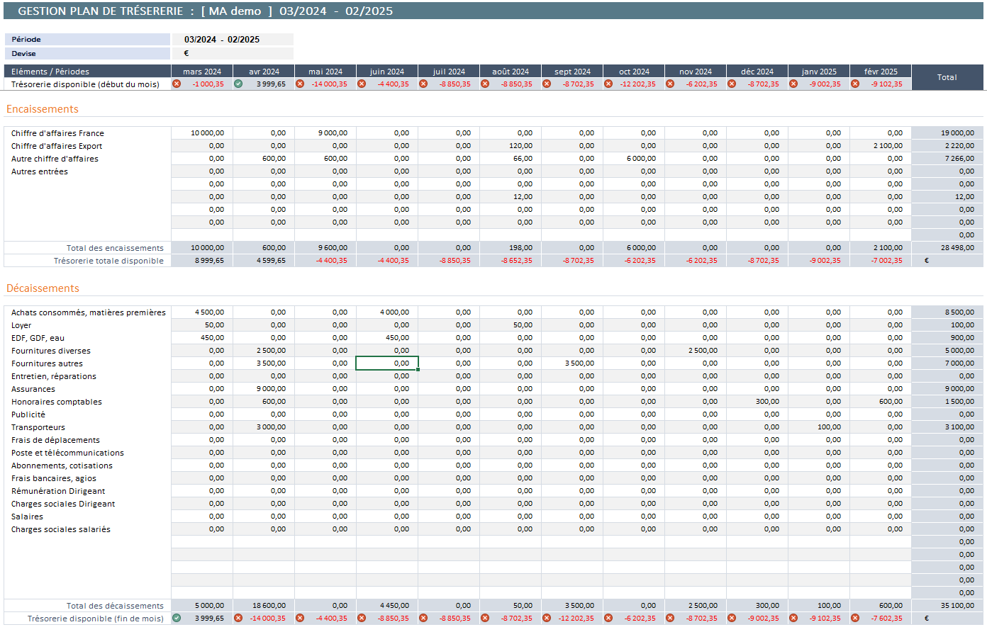 Je vais vous fournir un logiciel de gestion de trésorerie, flux et de prévisions sur Excel