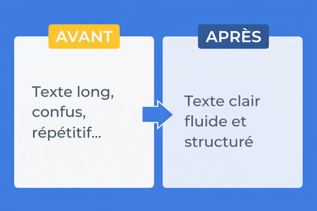 Reformulation, résumé et amélioration de textes en français. Transformation de contenus longs ou confus en textes clairs, structurés et fluides. Correction orthographique et amélioration de la lisibilité avec l’appui d’outils d’IA.