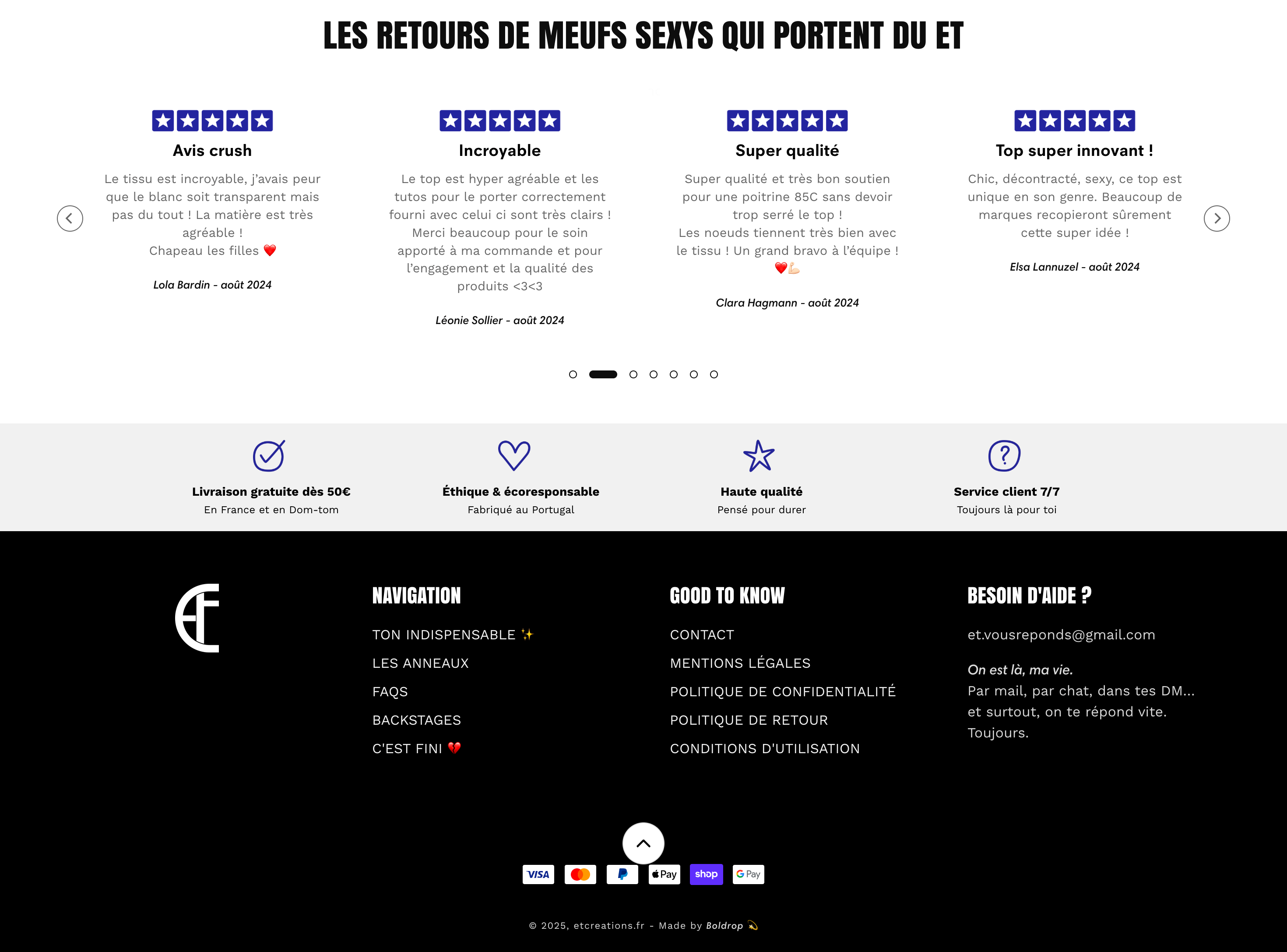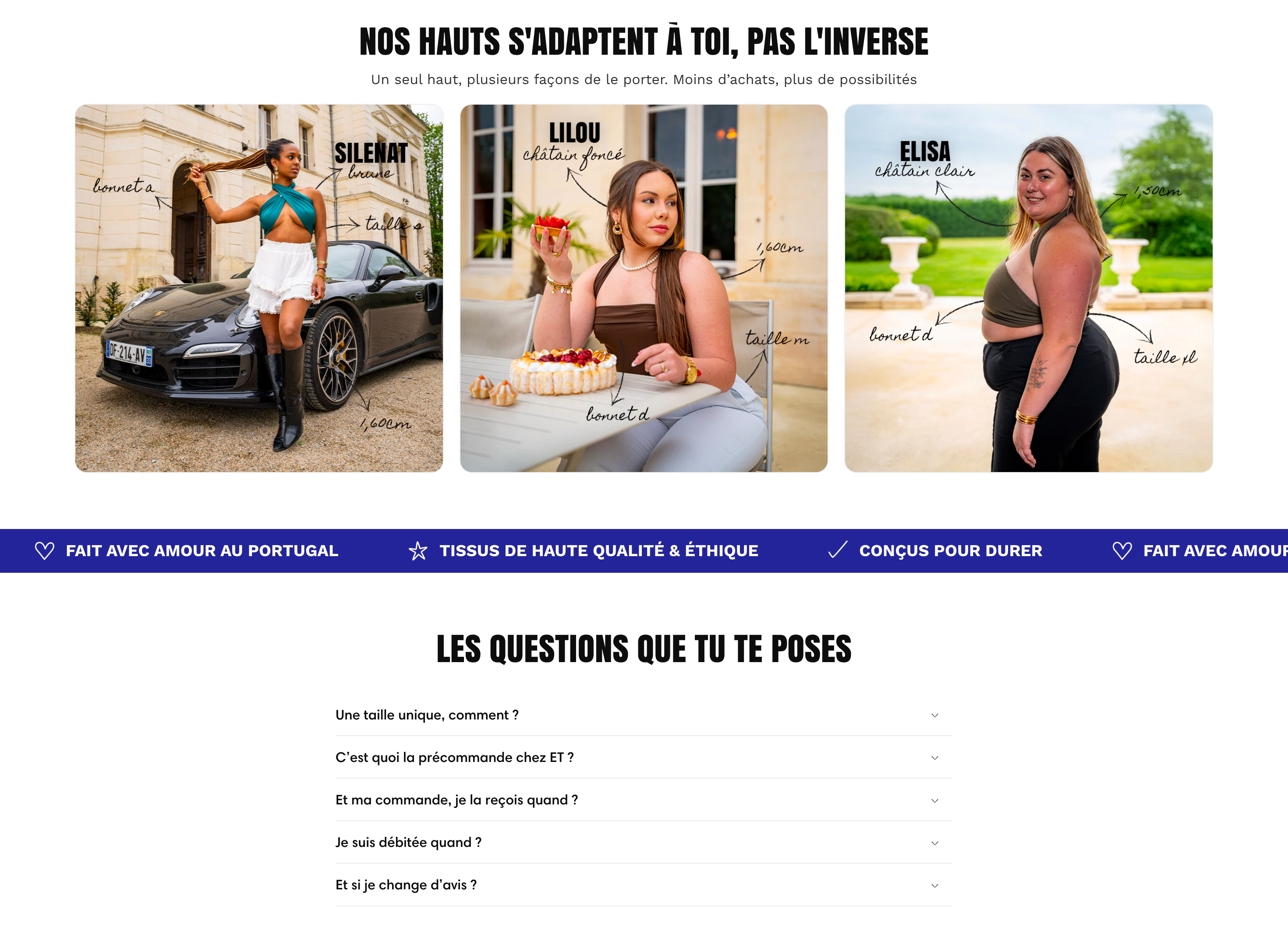 Réalisation de boutiques : ⚡️ Design esthétique et UX (expérience client) optimisée pour capter vos visiteurs ⚡️ Copywriting persuasif pour maximiser vos conversions ⚡️ Optimisation du taux de conversion (CRO)