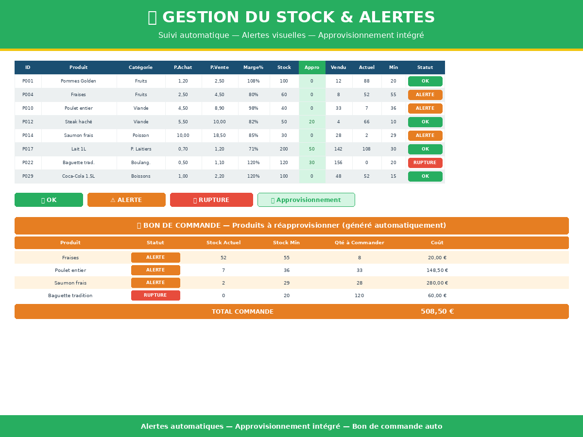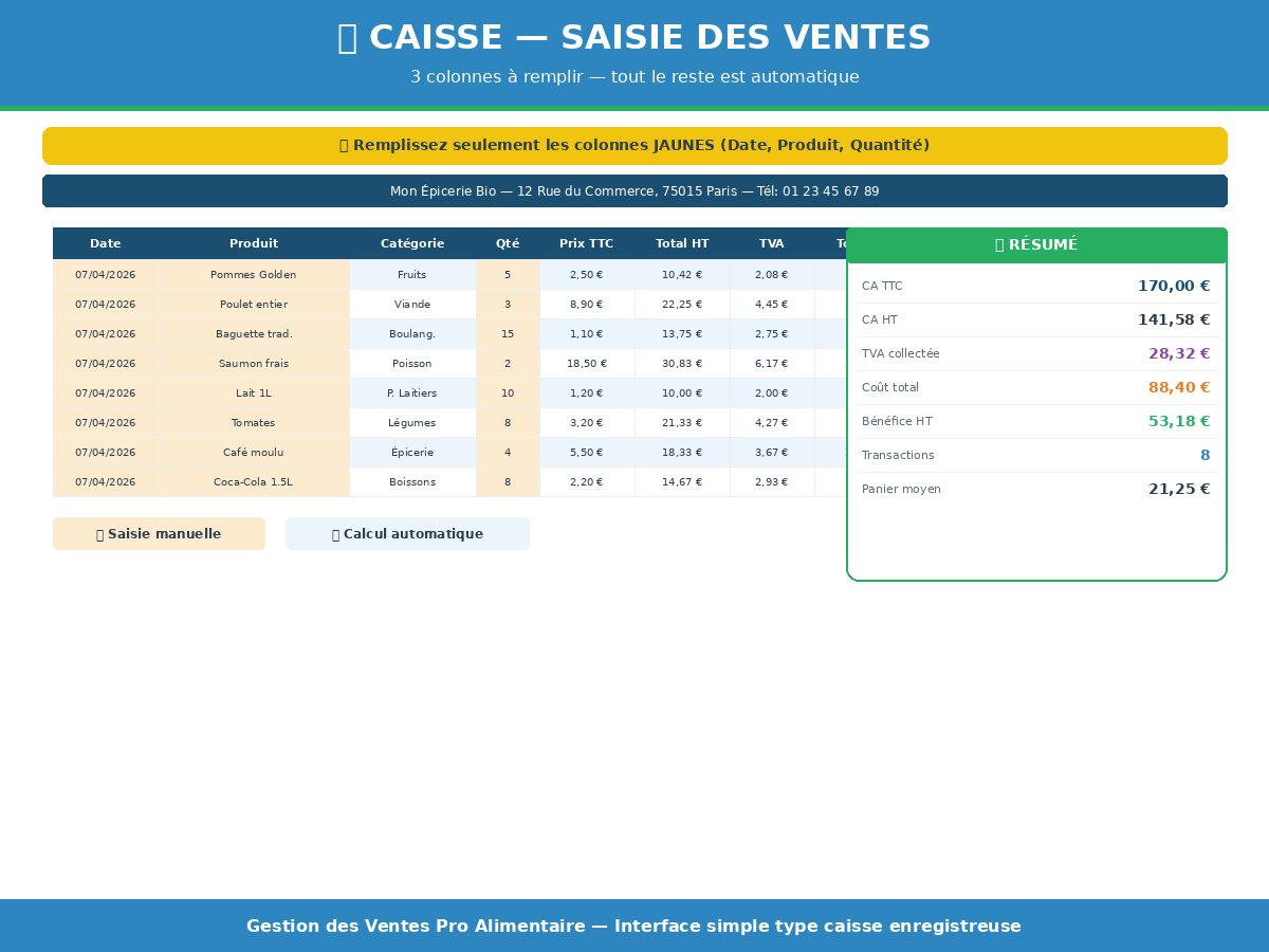 Je vais créer votre outil excel pro de gestion des ventes stock et caisse pour commerce alimentaire