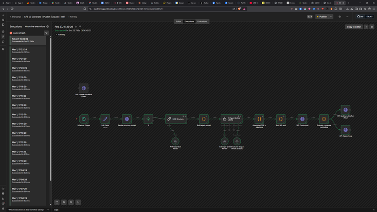 Une fois l'article généré (avec injection dynamique des balises locales et Hn optimisées), n8n ne demande pas d'autorisation humaine : il pousse l'article formaté directement sur le CMS du site cible via API.