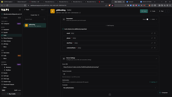 Interception des Intentions : Pendant qu'il converse au téléphone avec le prospect, l'Agent IA détermine s'il peut clore la discussion. Il déclenche alors informatiquement un appel d'outil (Tool Call), intercepté instantanément par nos webhooks Make.com.