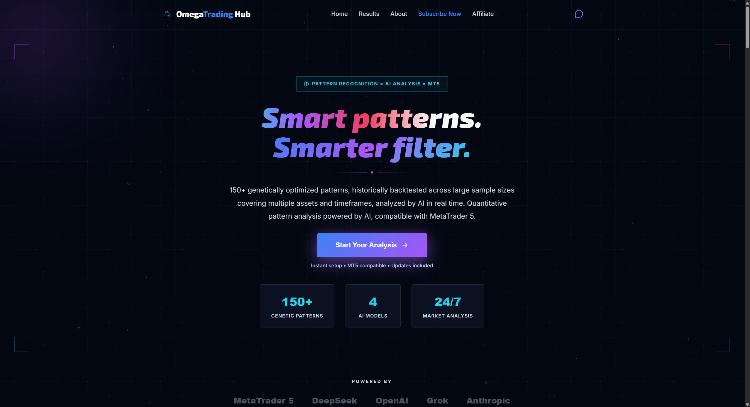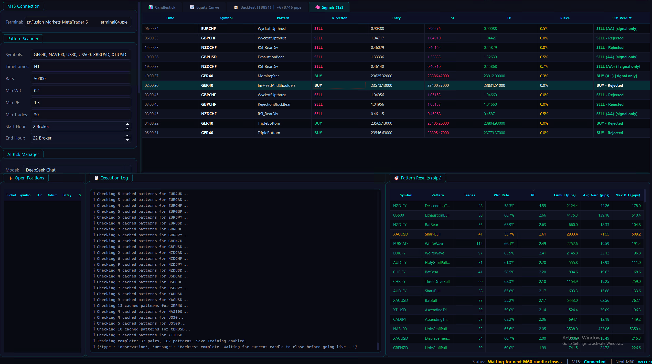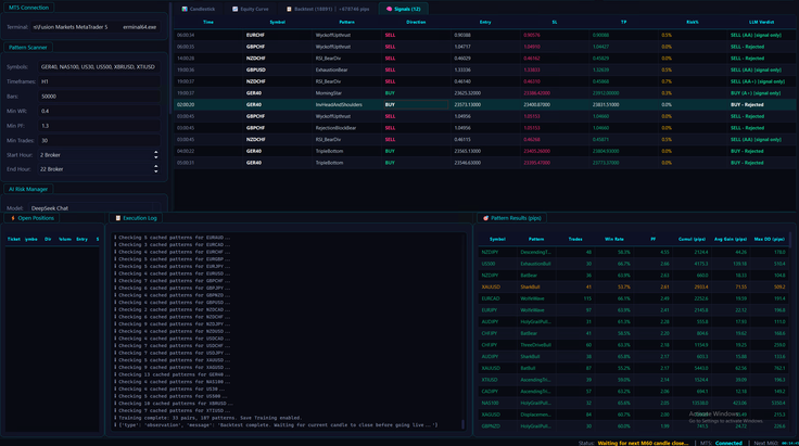 Applications de trading full stack : Analyse avancée avec 150+ patterns, optimisation génétique, intégration LLM/IA pour l’analyse de contexte, live fetching MT5, export et synchronisation mobile.
