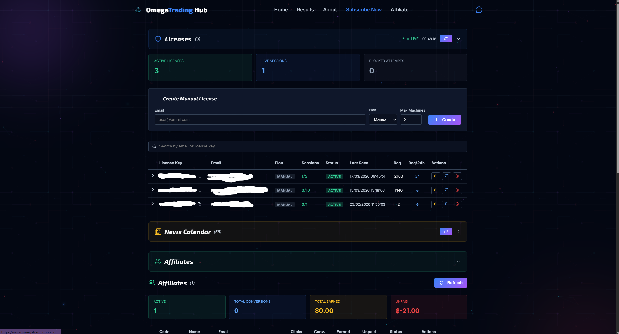 Sites web premium : Développement sur mesure (React + Vite), avec programmes internes, vérificateurs de licences, jeux et générateurs de marché en temps réel.