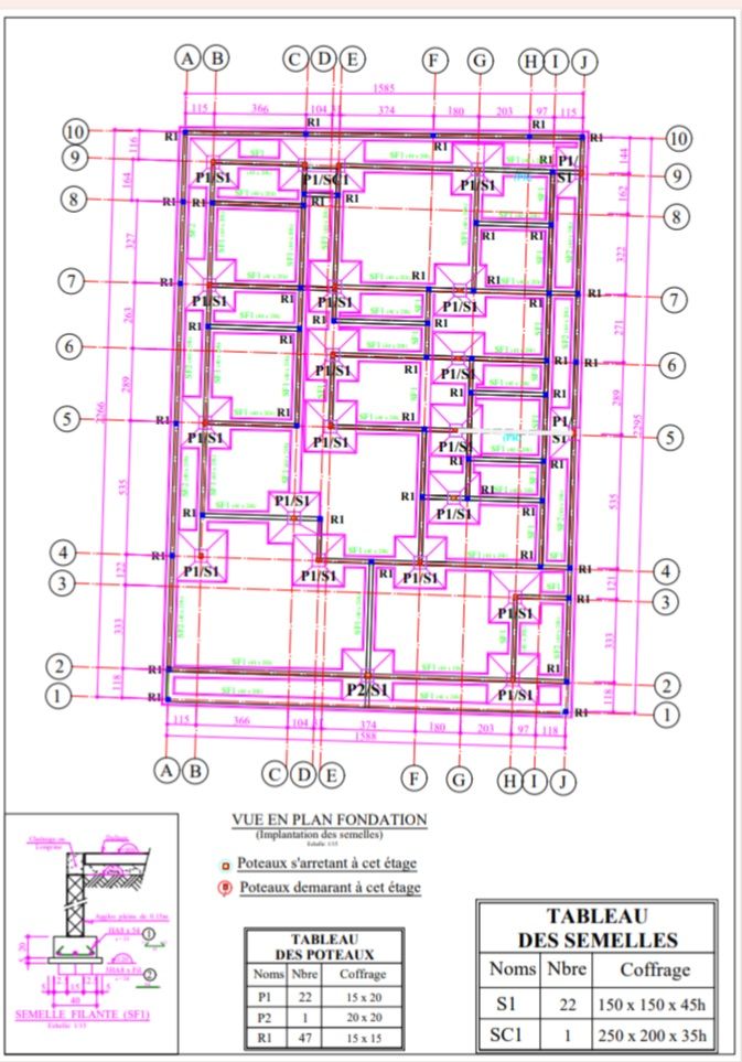 Dimensionnement précis des éléments structuraux : poteaux, poutres, dalles, fondations, semelles.