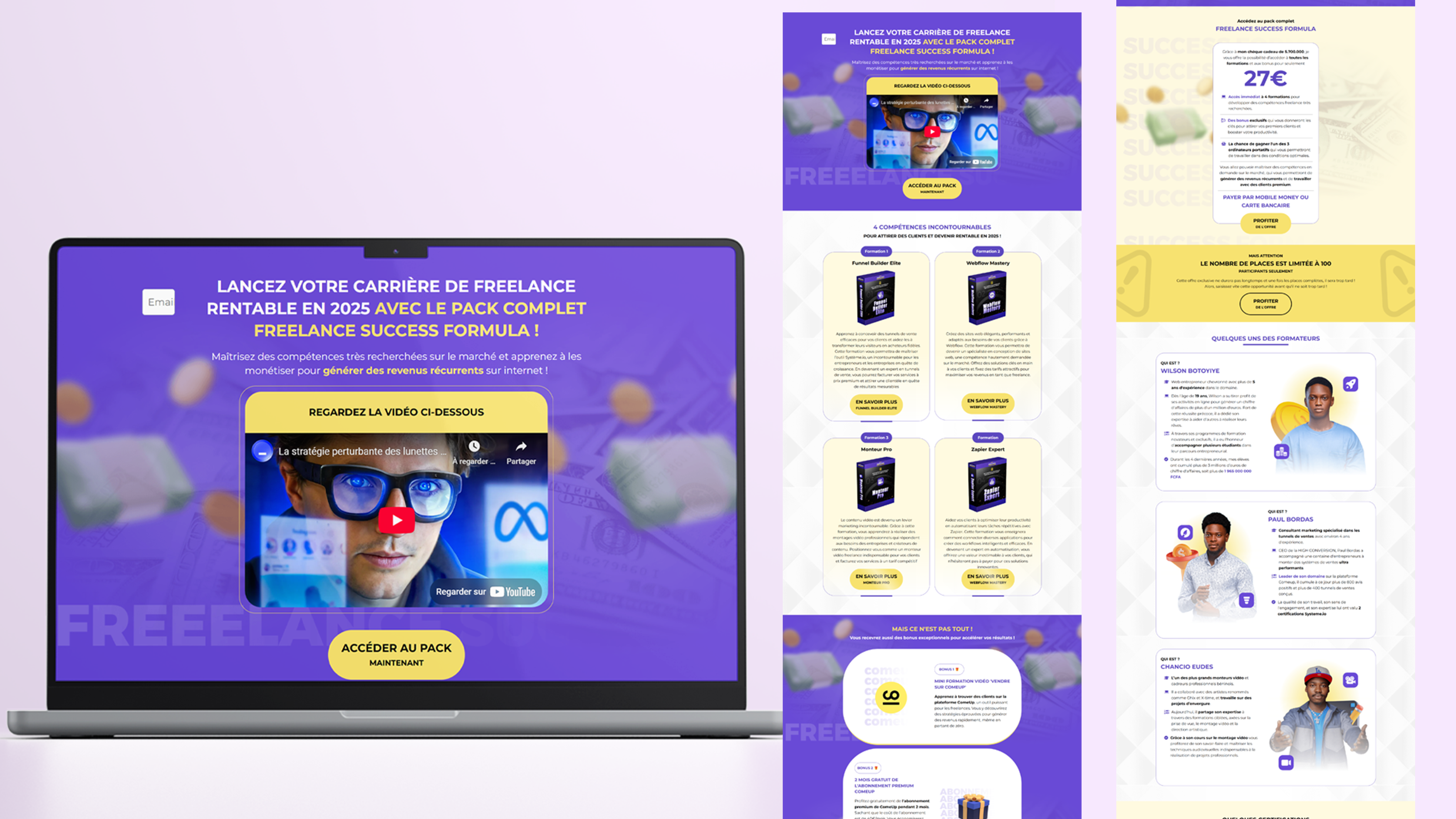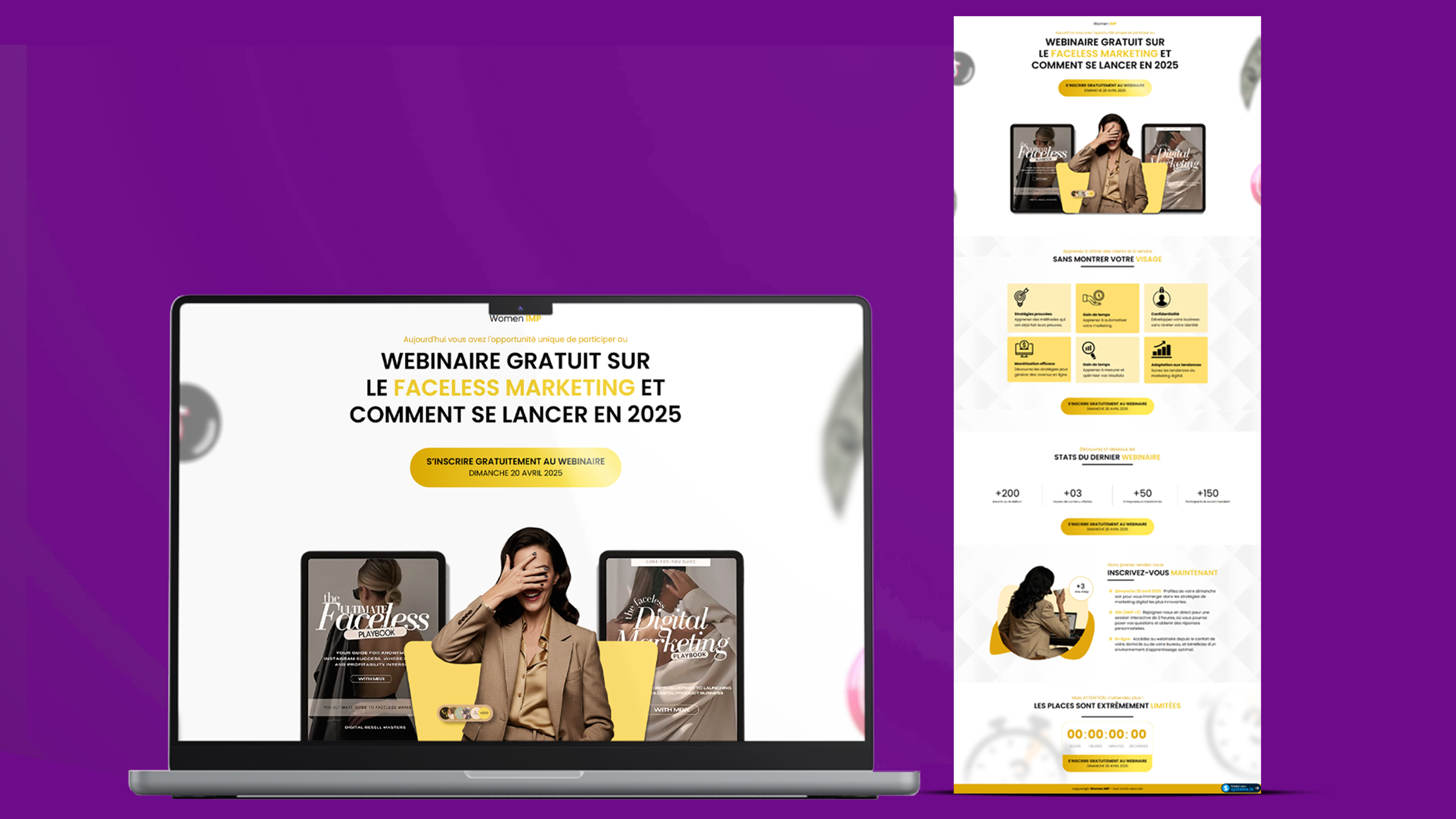 💡** MA DIFFÉRENCE** Je ne me contente pas de créer un tunnel : je construis un écosystème stratégique complet autour de votre offre. Et avec mes 3 ans d’expérience en design, vos pages respirent la clarté, la crédibilité et la cohérence visuelle — un vrai plus pour vos conversions.
