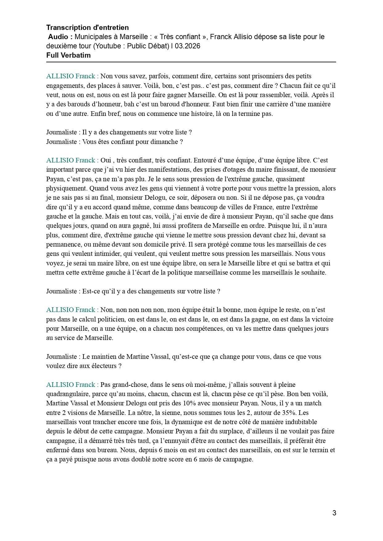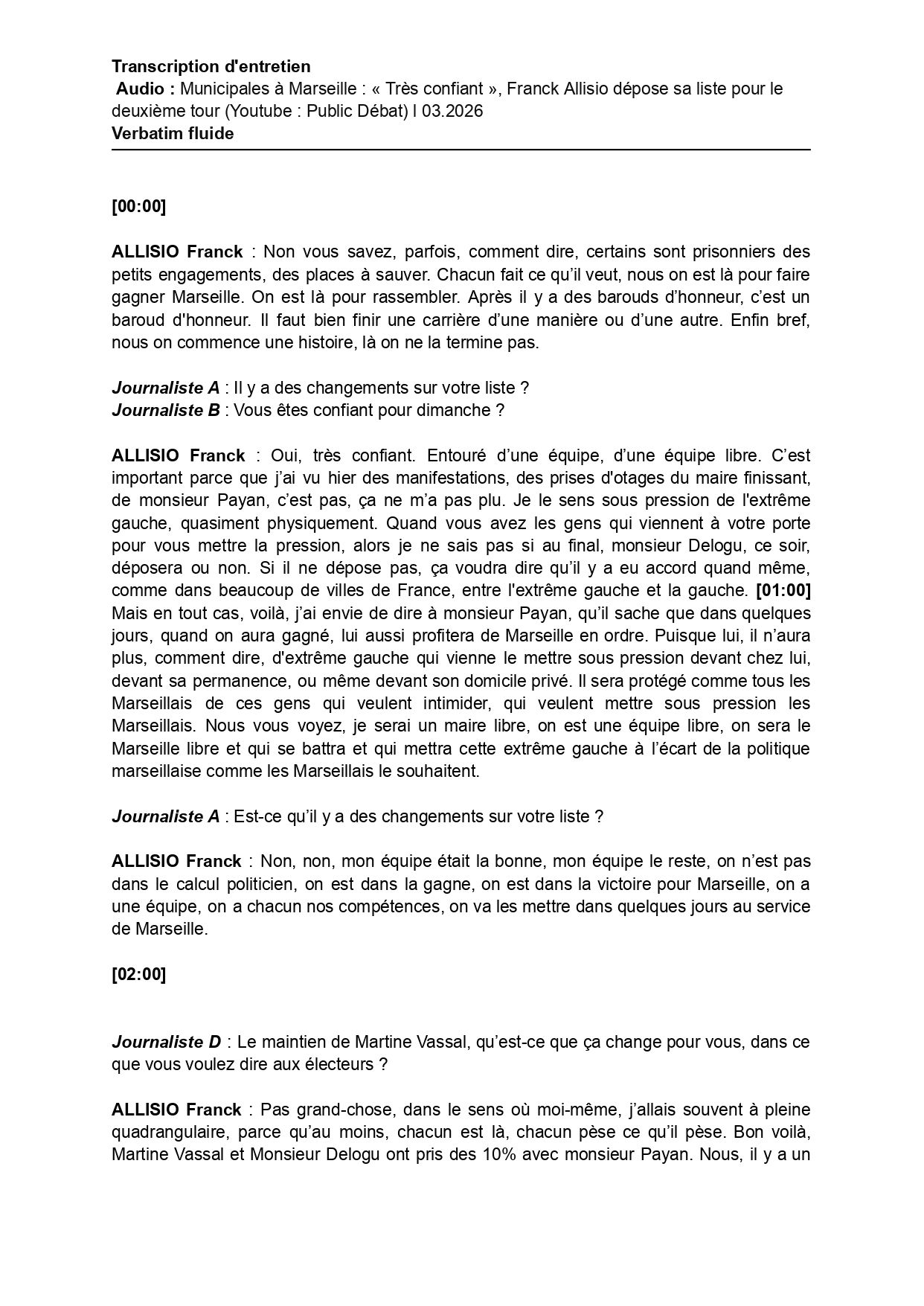 Je vais réaliser la transcription fidèle et épurée de vos fichiers audio et vidéo