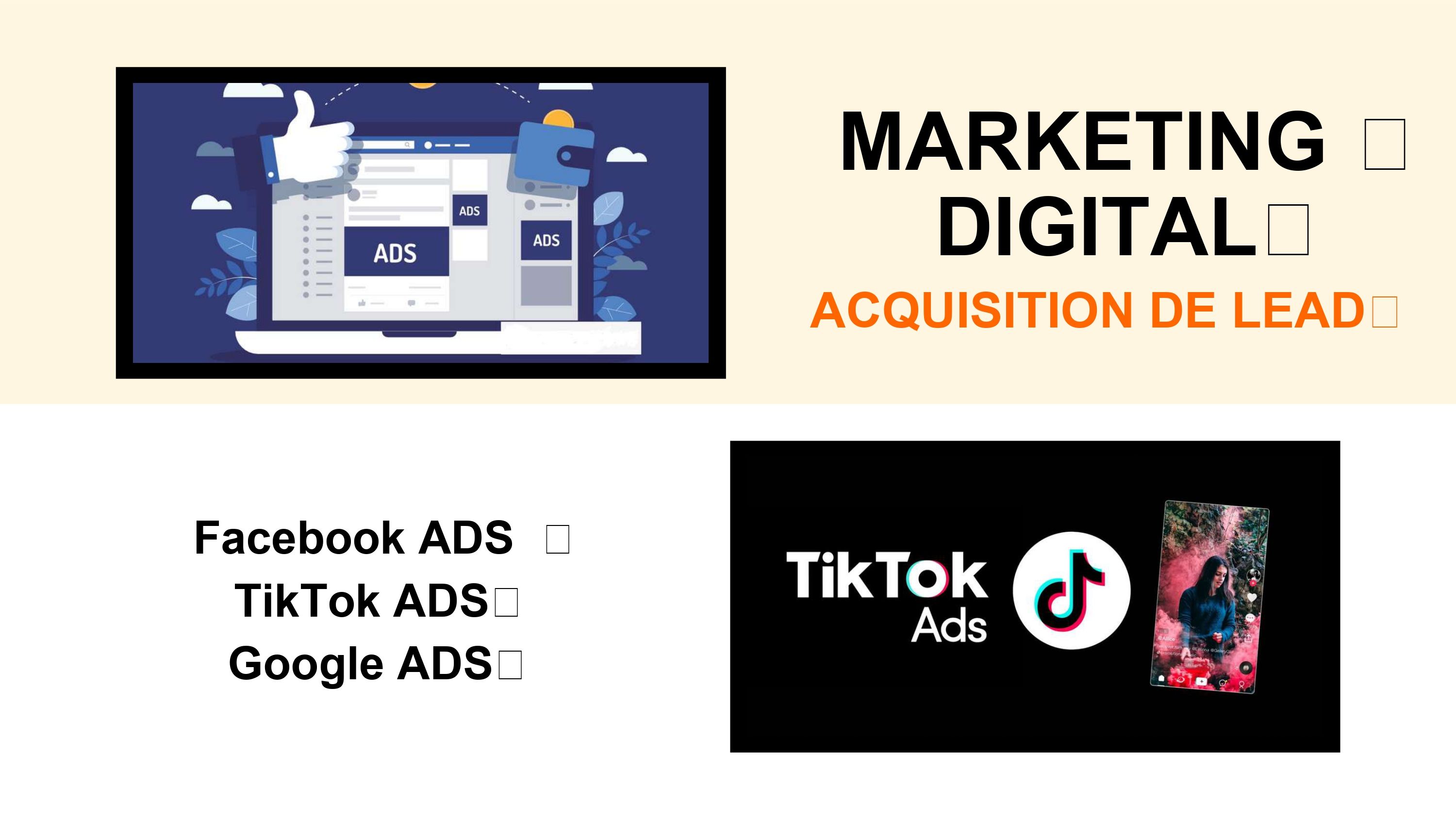 Spécialisé dans l'acquisition de leads et de prospects : Facebook ADS - Google ADS -