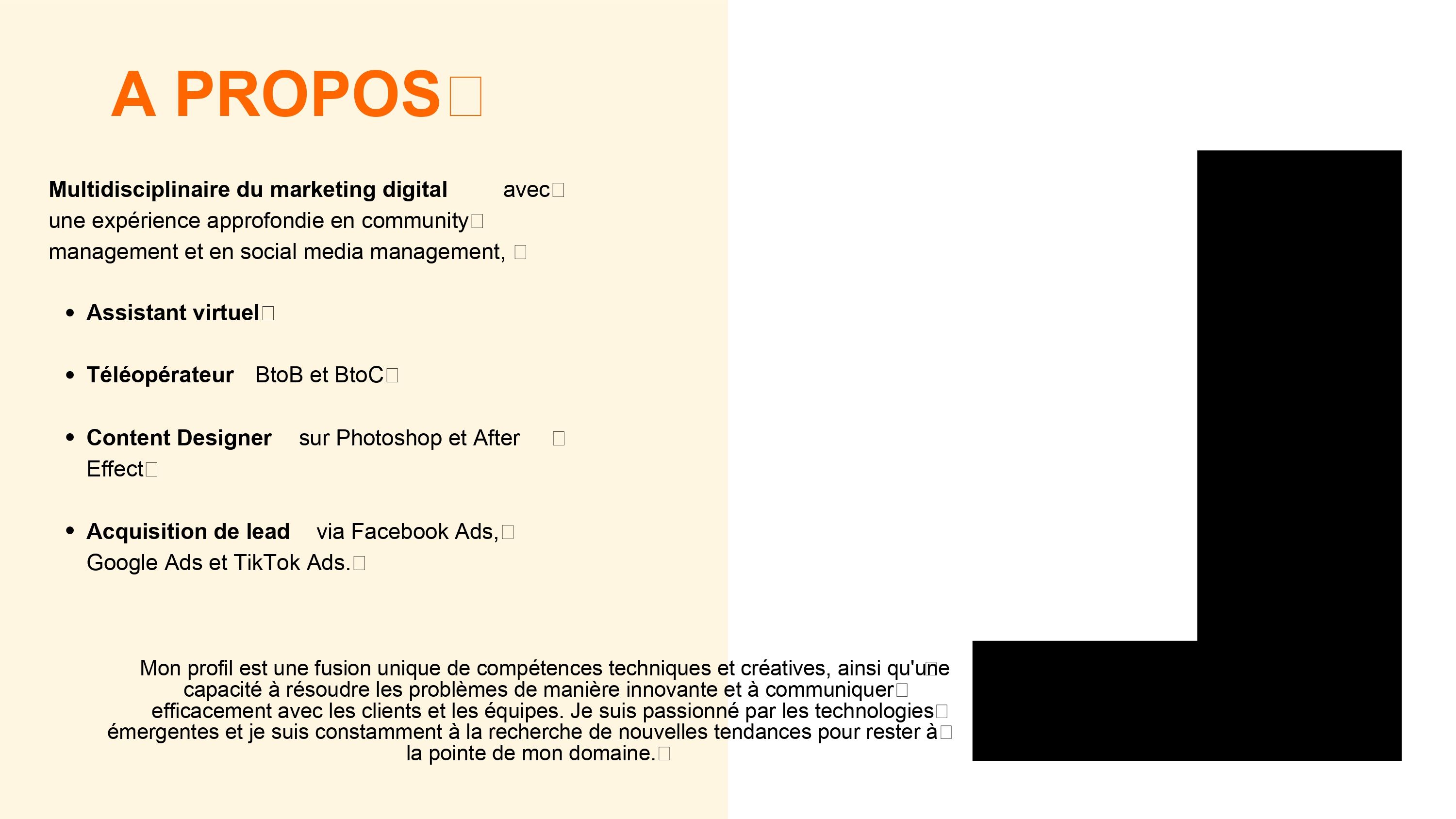 📊 Spécialiste en marketing digital, j’accompagne les entrepreneurs, startups et entreprises à développer leur visibilité en ligne et booster leurs ventes grâce à des stratégies performantes et sur mesure.