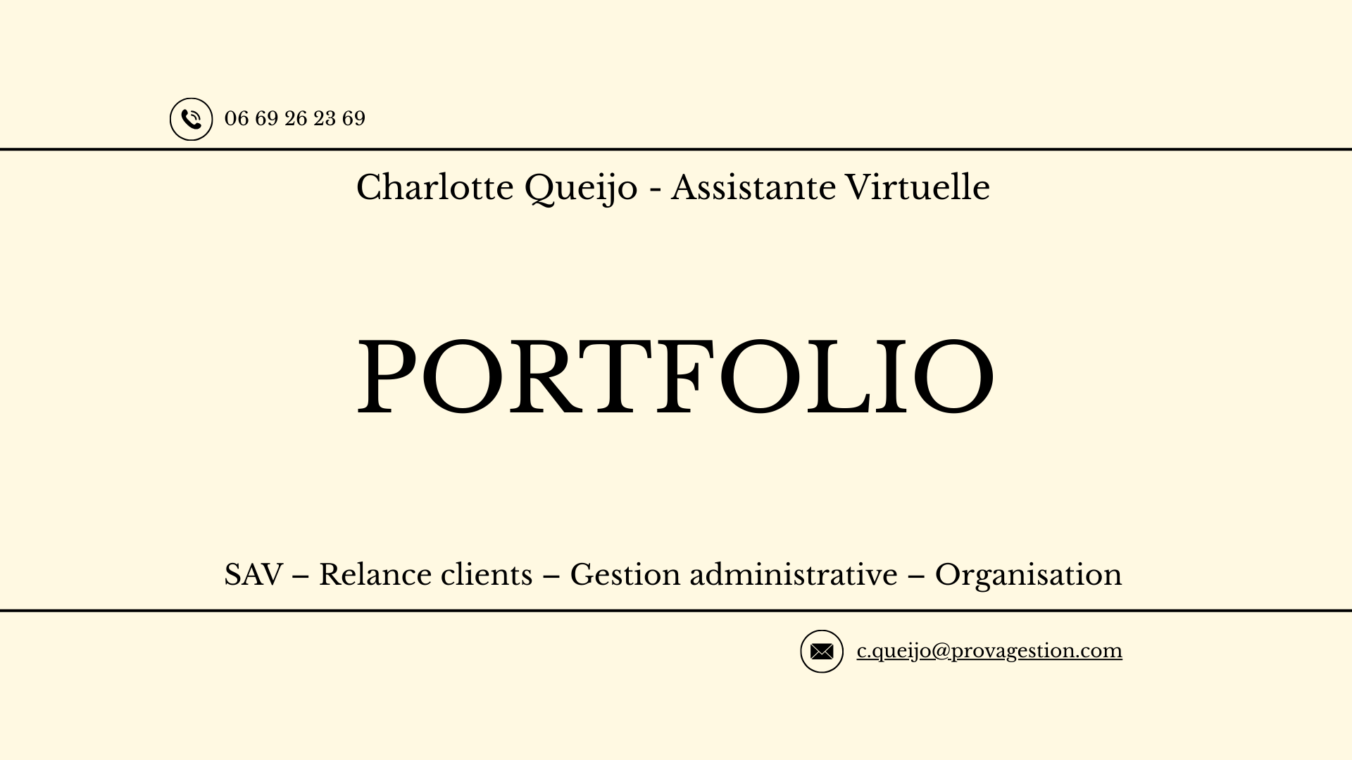 Je m’appelle Charlotte Queijo et j’accompagne les entreprises et entrepreneur·es à structurer leur activité, simplifier leur organisation et gagner du temps au quotidien grâce à mes services d’assistante virtuelle.
