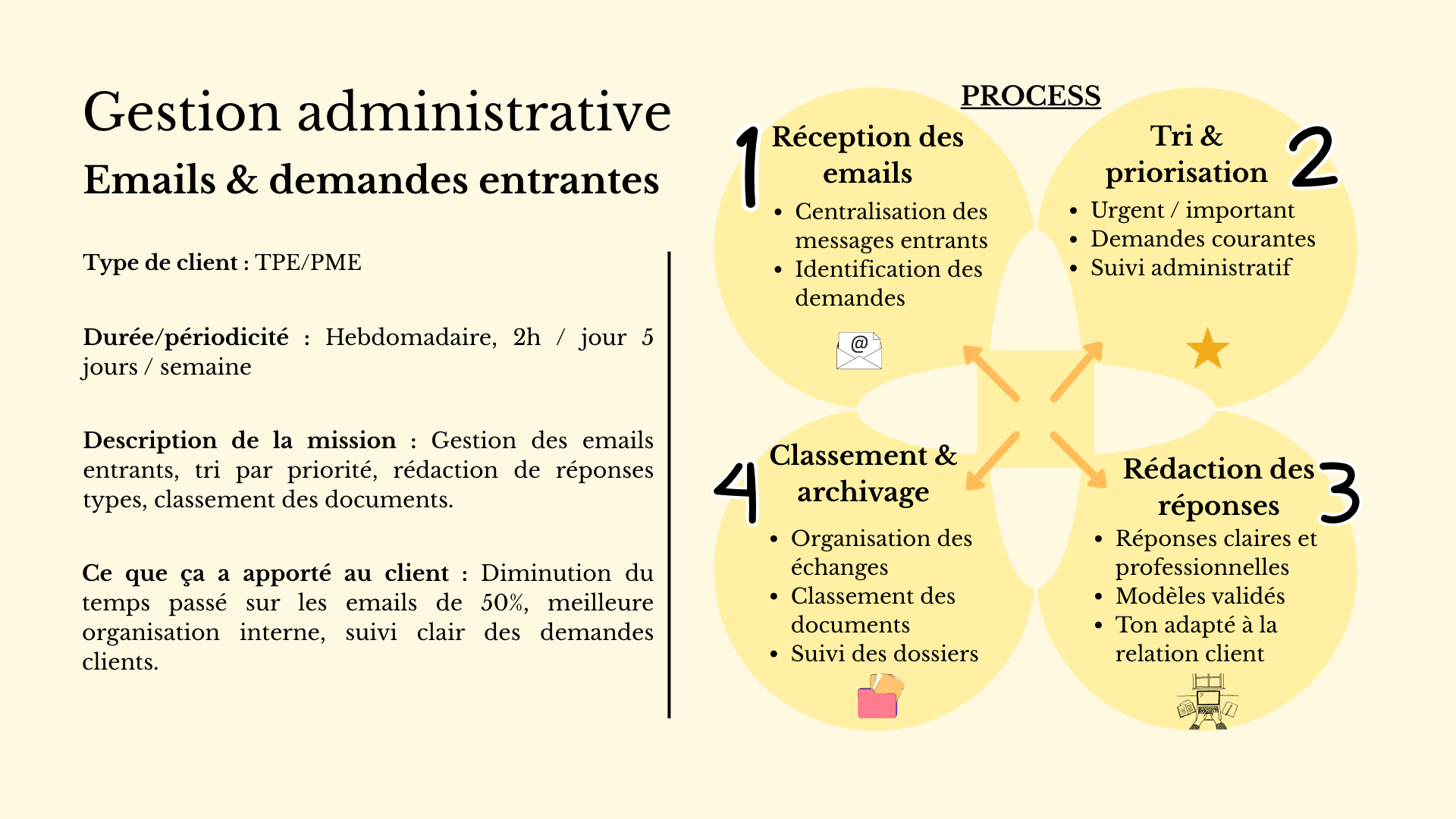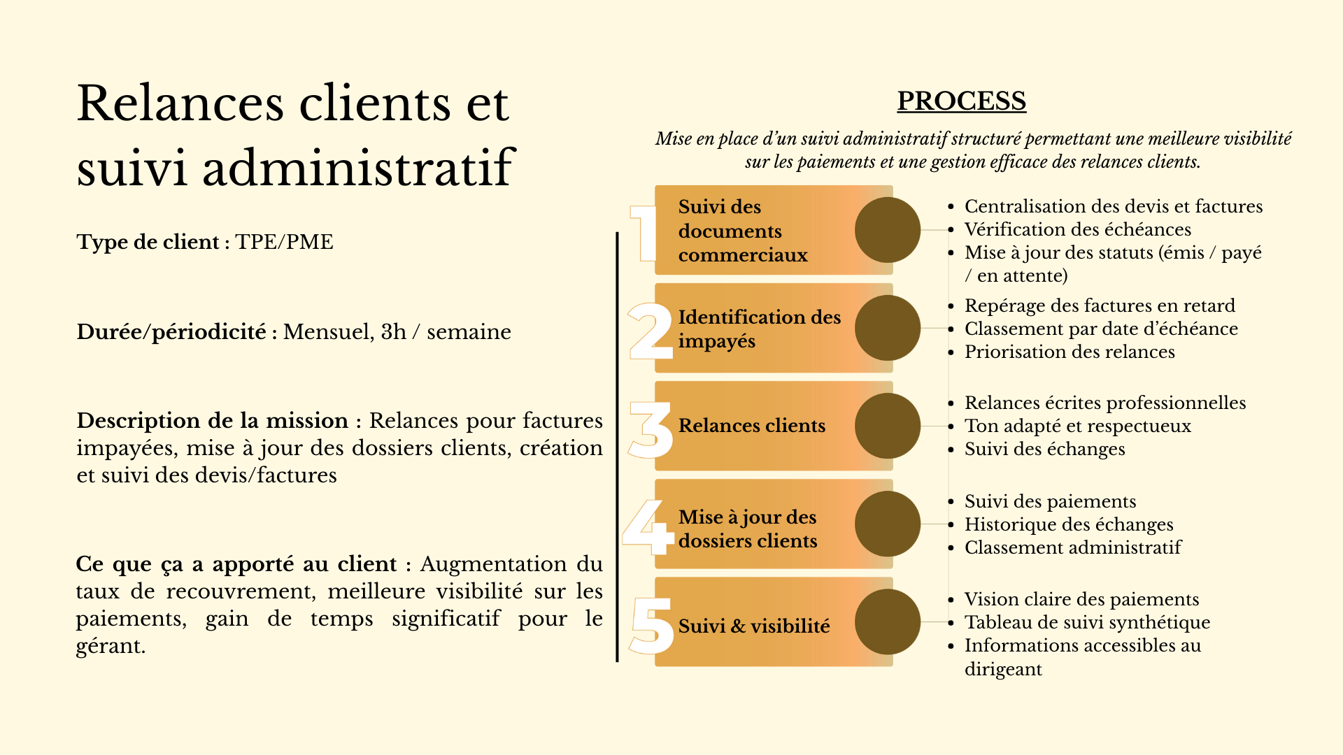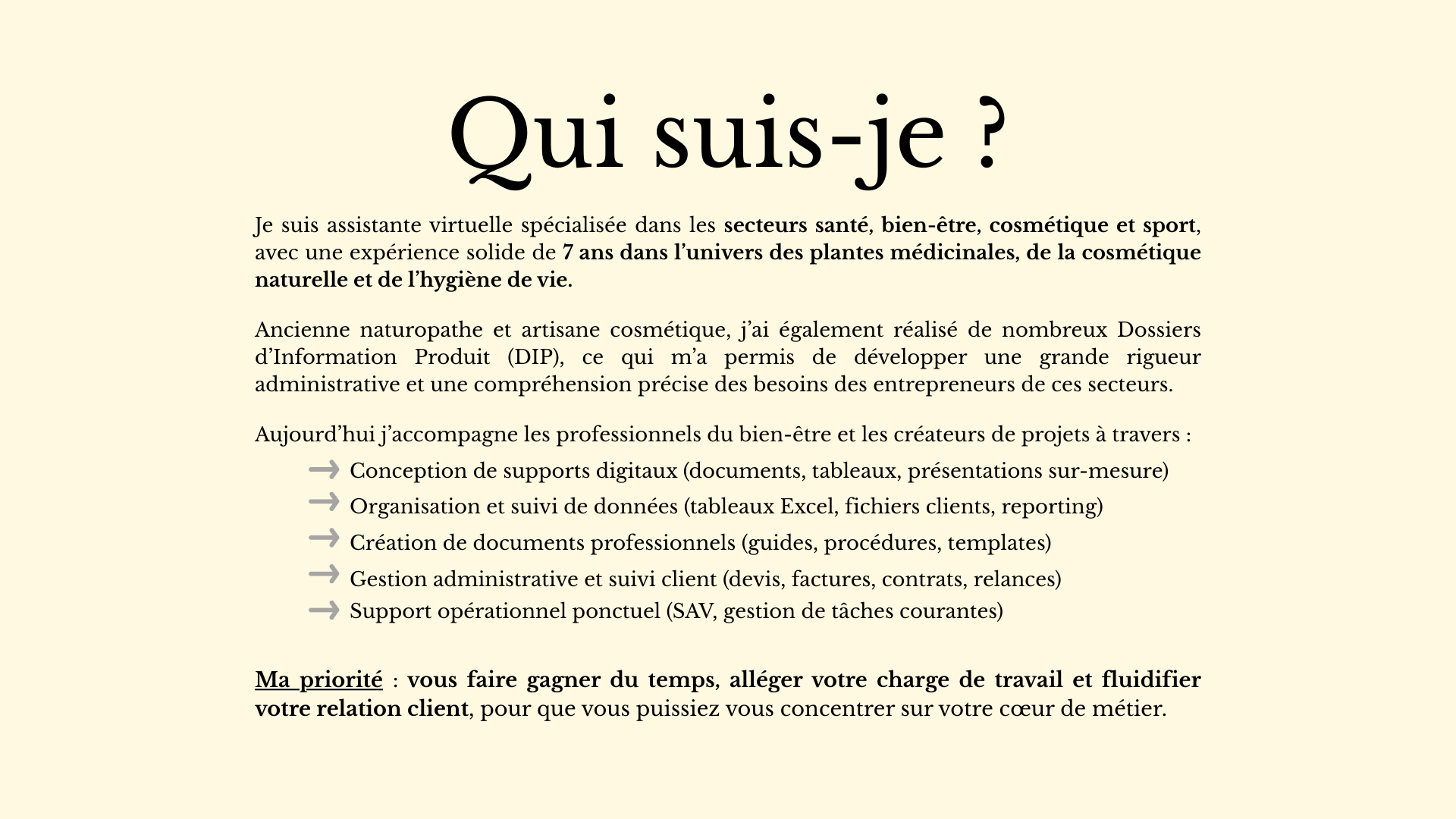 💡 Mon objectif : vous aider à clarifier vos process, alléger votre charge mentale et vous concentrer sur ce qui compte vraiment pour votre entreprise.