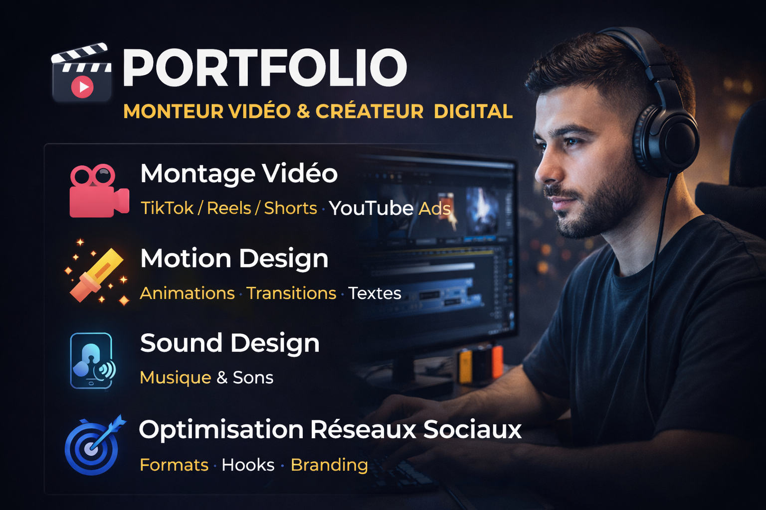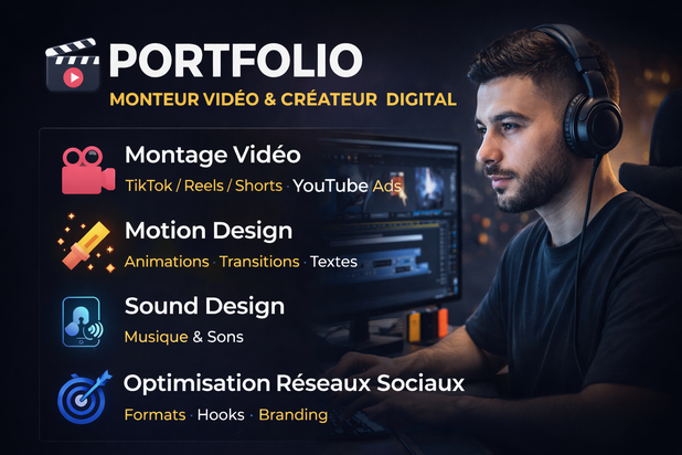 En tant qu’auto-entrepreneur, je travaille en freelance dans le domaine du montage vidéo et du design visuel. J’accompagne des marques, startups et créateurs de contenu en leur offrant des vidéos performantes et des designs professionnels . -