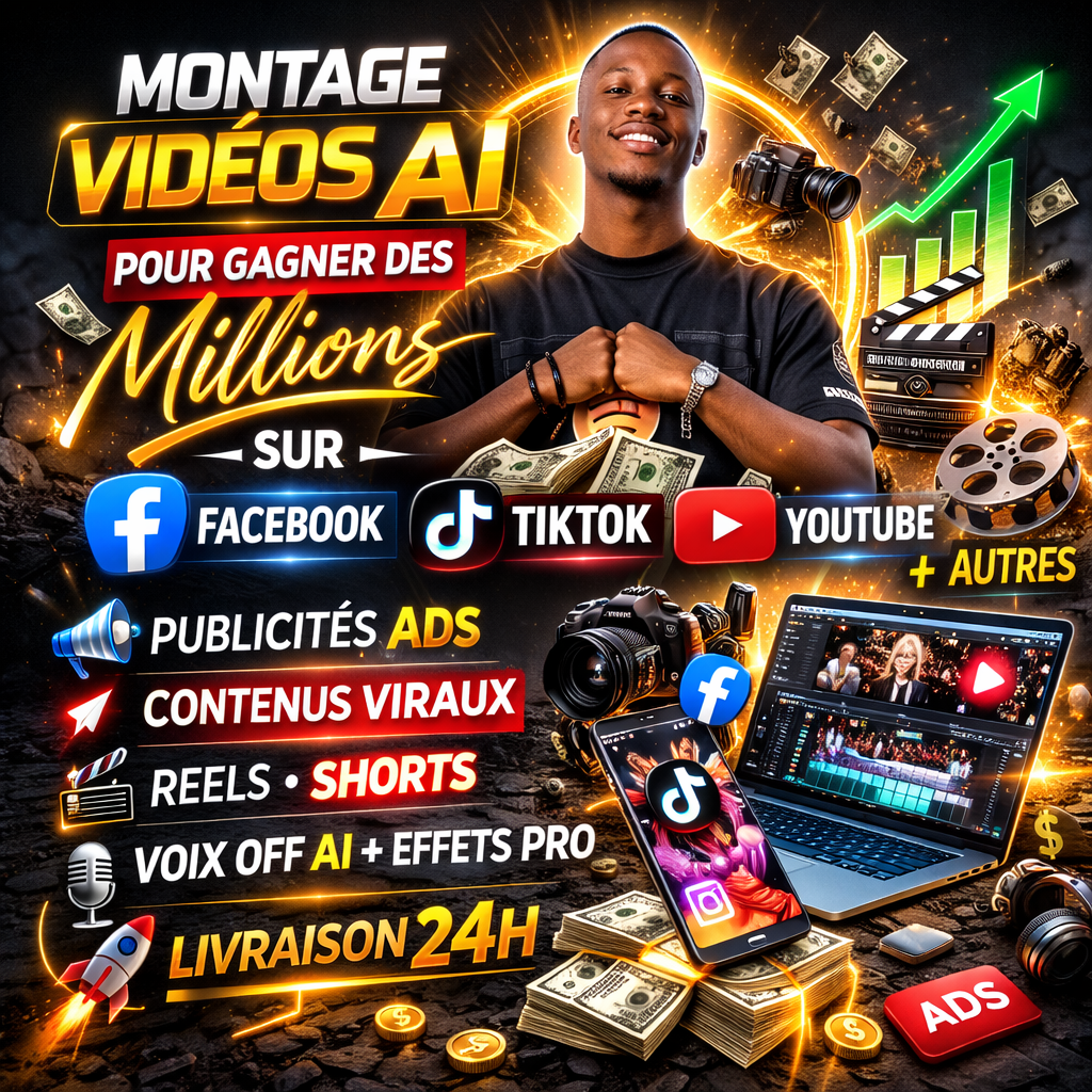 Je monte vos vidéos TikTok virales Je crée vos publicités Facebook avec IA Je transforme vos photos en vidéo dynamique.