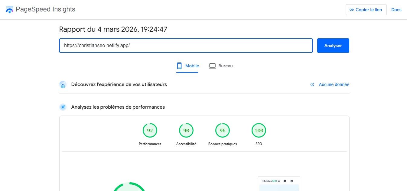 Ce ne sont pas des promesses, ce sont des preuves vérifiables sur Google PageSpeed Insights.
