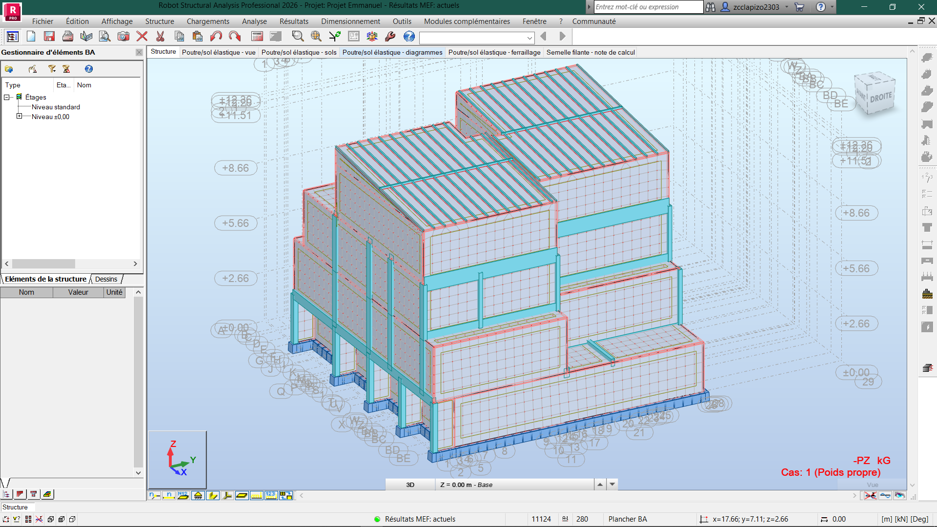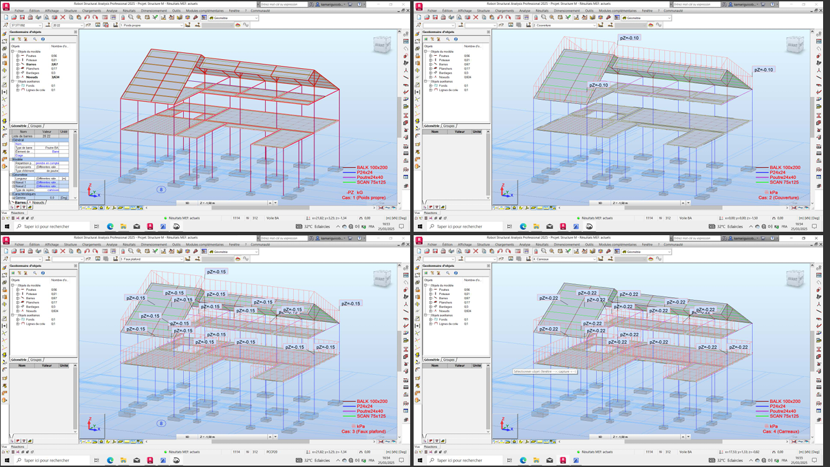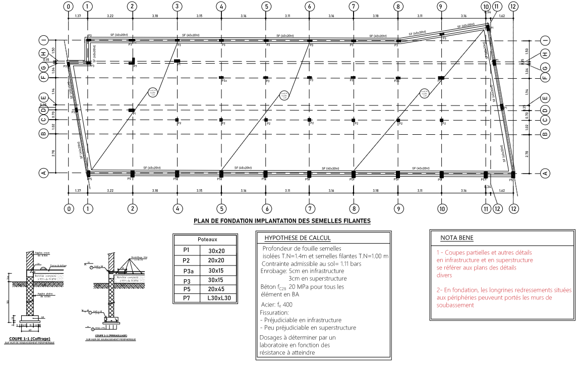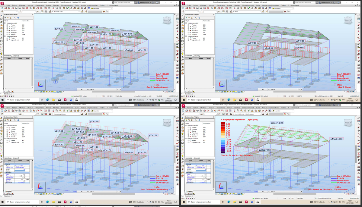 Je vais réaliser le calcul de structure complet pour votre bâtiment, avec des plans détaillés