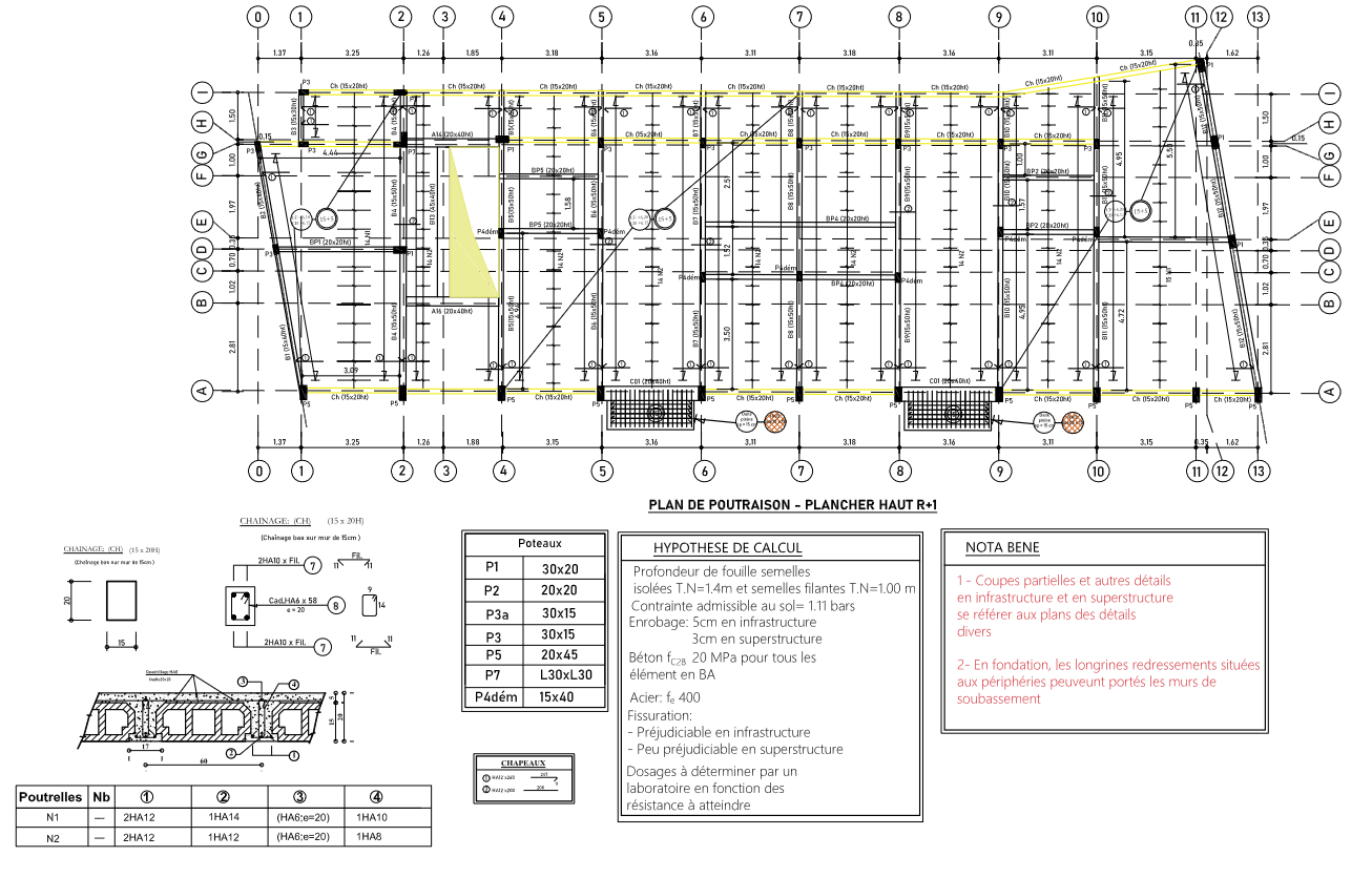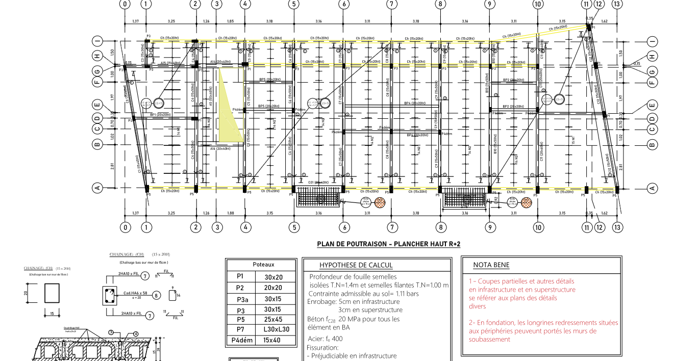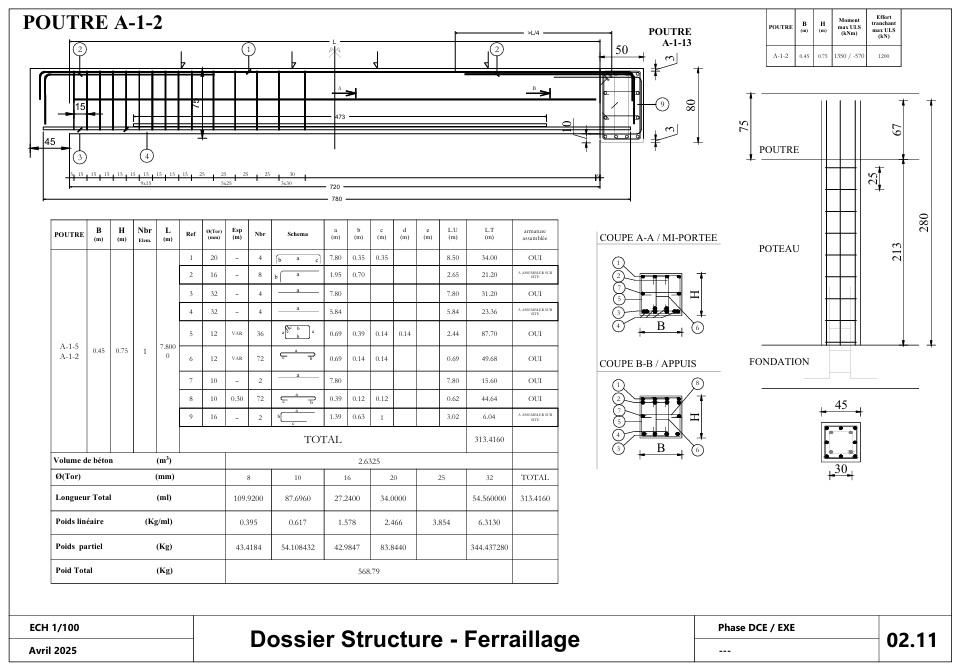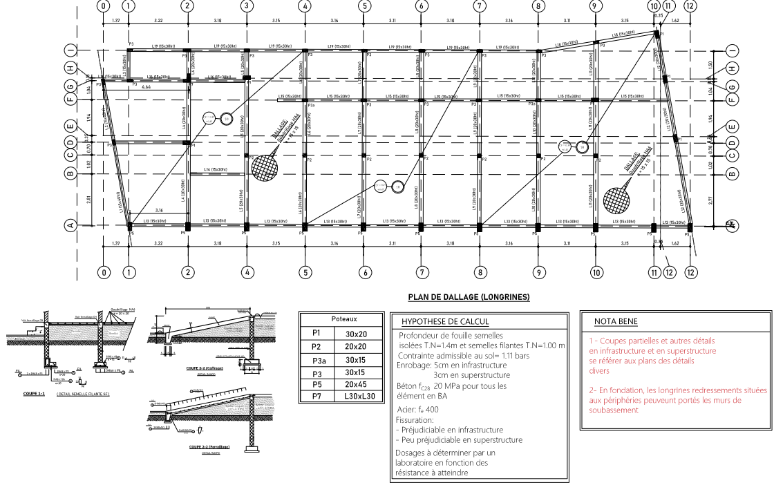 Je vais réaliser le calcul de structure complet pour votre bâtiment, avec des plans détaillés