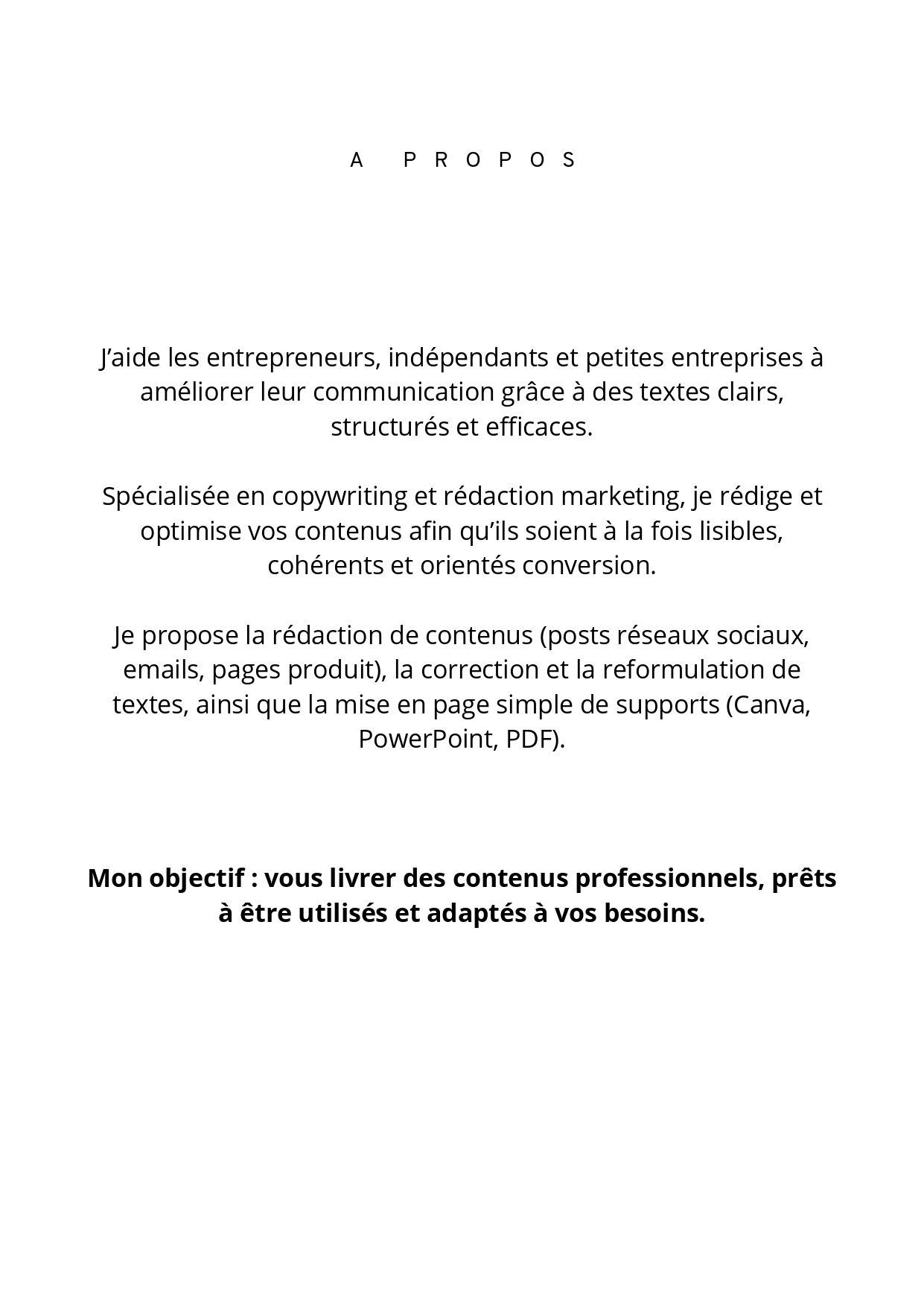 J’aide les entrepreneurs, indépendants et petites entreprises à mieux communiquer et mieux vendre grâce à des textes clairs, engageants et structurés.