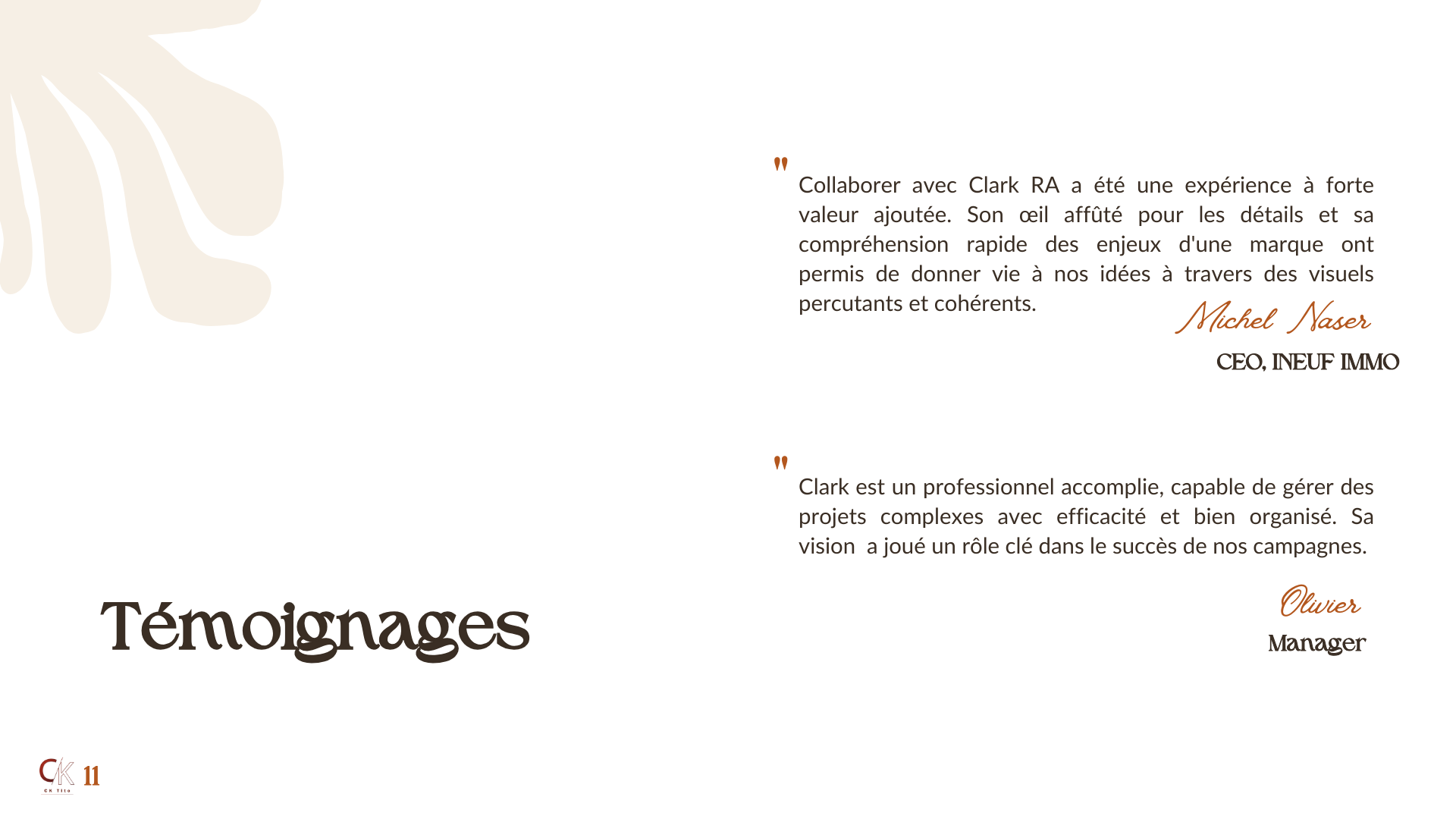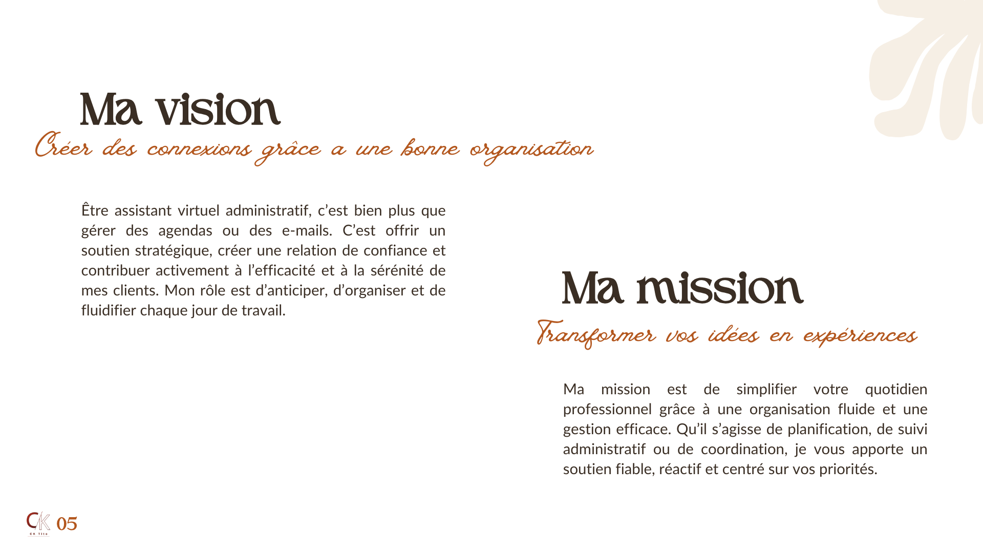 🧠 Organisé, créatif et proactif, je m’adapte facilement à chaque projet pour offrir un service professionnel, réactif et sur mesure. Je maîtrise des outils comme Word, Excel, Adobe Suite, et j’ai un bon niveau en français et en anglais.