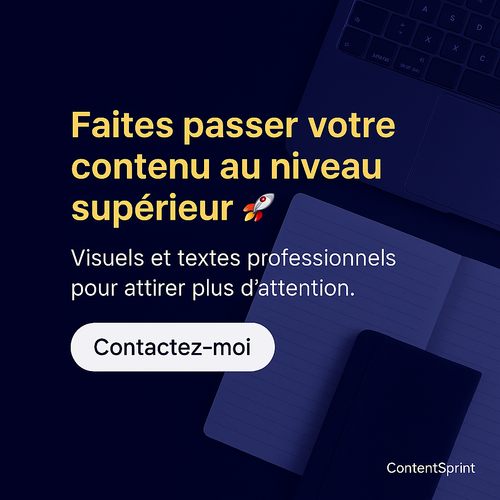 Créatif, rigoureux et orienté résultats, j’aide les entreprises et indépendants à renforcer leur présence en ligne grâce à du contenu professionnel, visuel et impactant. Je réalise des posts LinkedIn engageants, des scripts vidéo courts, des ebooks clairs et design, ainsi que des visuels modernes pour vos réseaux ou sites web.