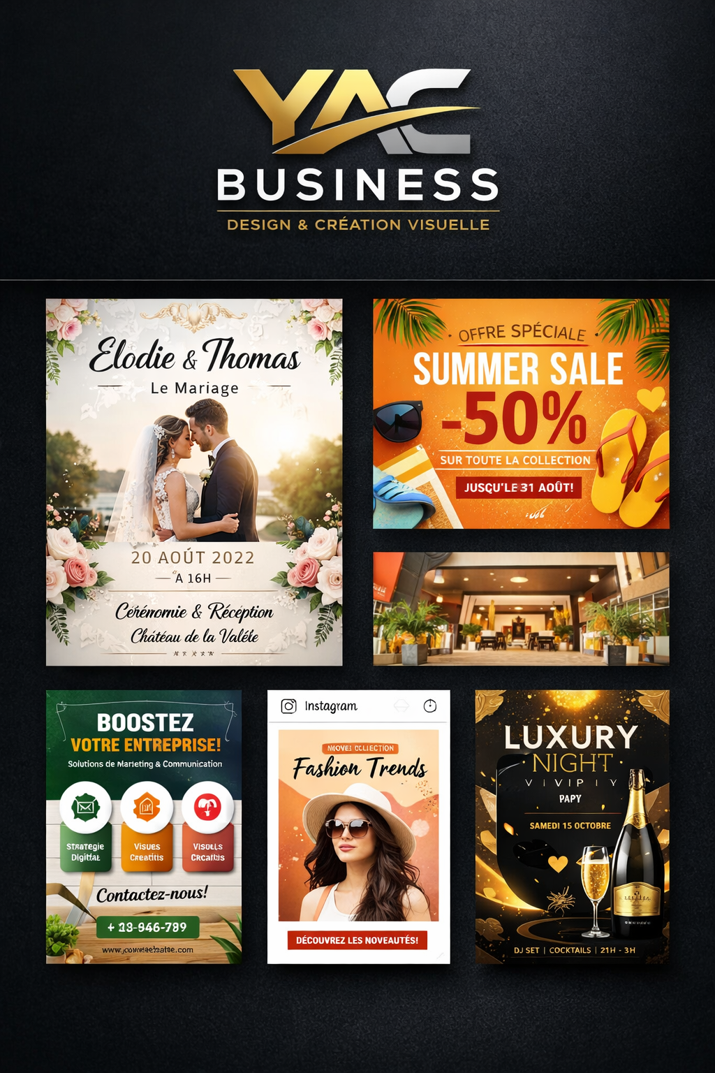 Je suis designer graphique👨🏿‍💻 spécialisé dans la création de logos, affiches et visuels professionnels pour tous types d’événements (mariage,💍 soirée, business, publicité, etc.).
