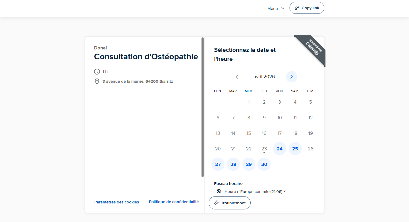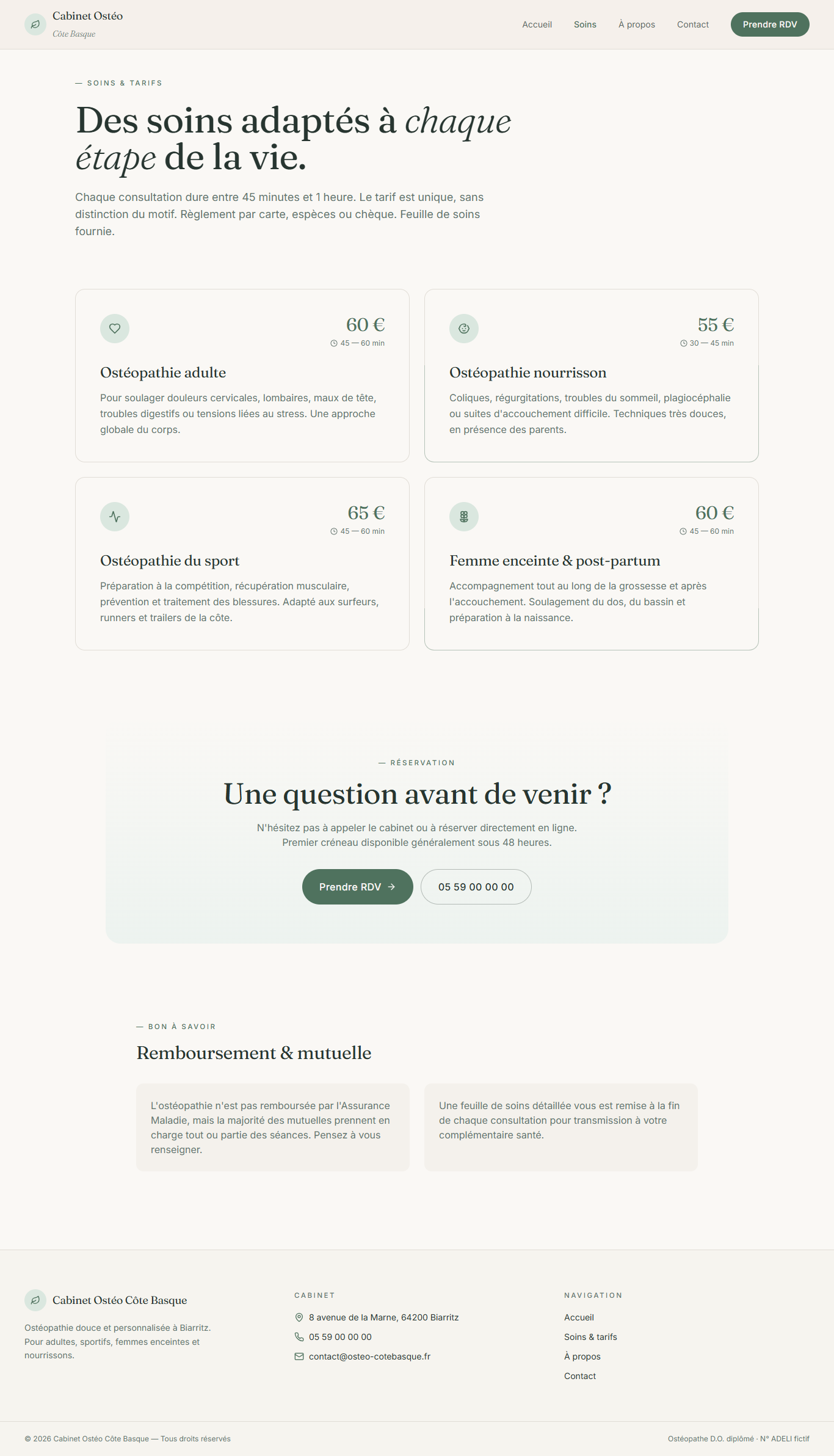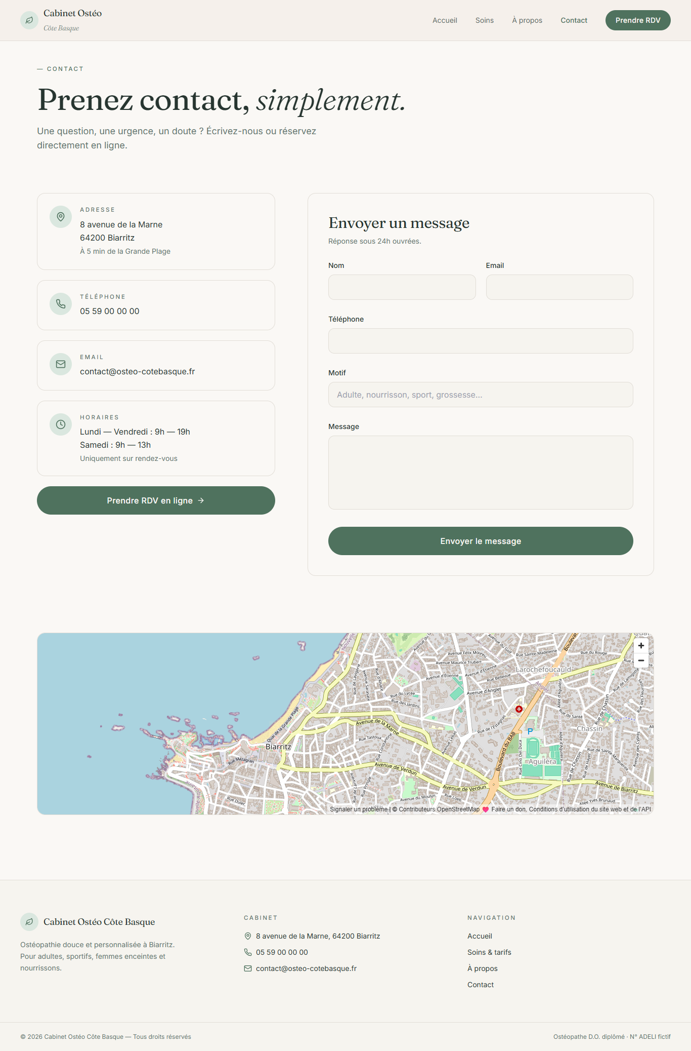 Développeur web freelance spécialisé dans la création de sites vitrines pour les professionnels locaux de partout en France, j'aide les artisans, thérapeutes, photographes et commerçants à avoir une présence en ligne professionnelle qui attire de nouveaux clients. Chaque site que je crée est moderne, rapide, adapté mobile, et inclut une prise de RDV en ligne pour que vos clients puissent réserver directement — sans allers-retours par téléphone. Basé au Pays Basque, j'interviens localement et à distance partout en France.