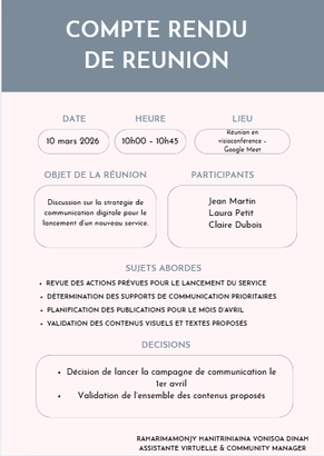 - Assistanat virtuel & Community management Luméra-Academy ‐ mars 2026
