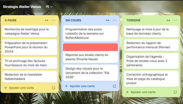 Organisation et structuration de vos espaces de travail (Notion/Trello).
