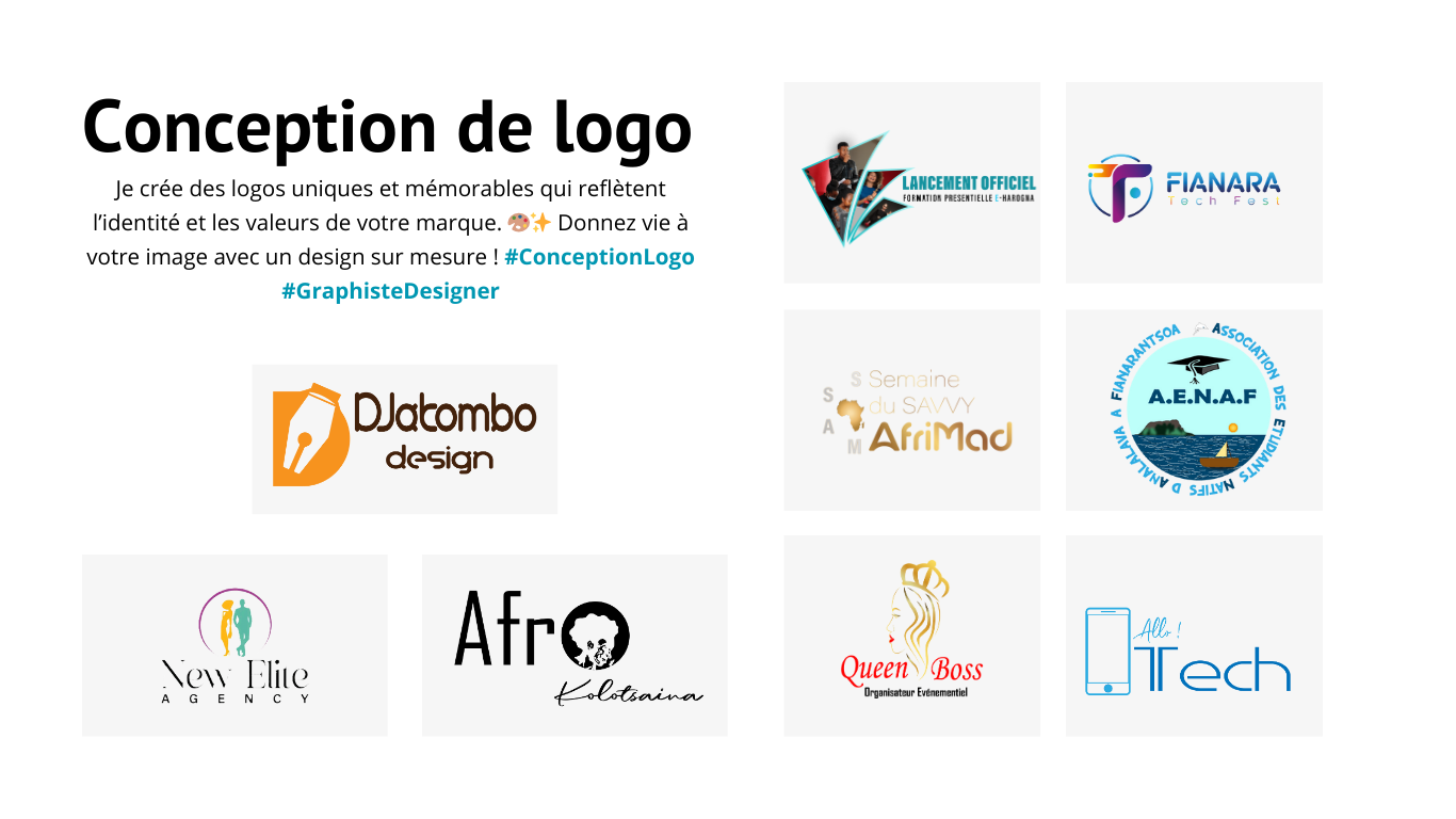 Fort de mon expertise en "Couverture visuelle des grands événements", je combine mes compétences créatives et stratégiques pour offrir des designs impactants et adaptés. Avec une expérience solide dans la gestion de projets visuels (logos, identités visuelles, affiches, vidéos et plus), je m’engage à créer des visuels percutants pour chaque plateforme, qu'il s'agisse des réseaux sociaux ou de supports imprimés. Mon objectif est de transformer vos idées en expériences visuelles mémorables, que ce soit pour des événements d'envergure ou pour des besoins spécifiques de communication.
