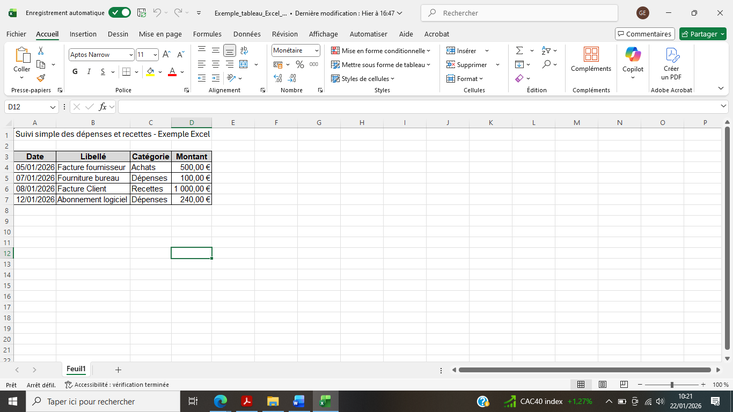 Je vais créer ou organiser vos tableaux Excel de manière claire et professionnelle