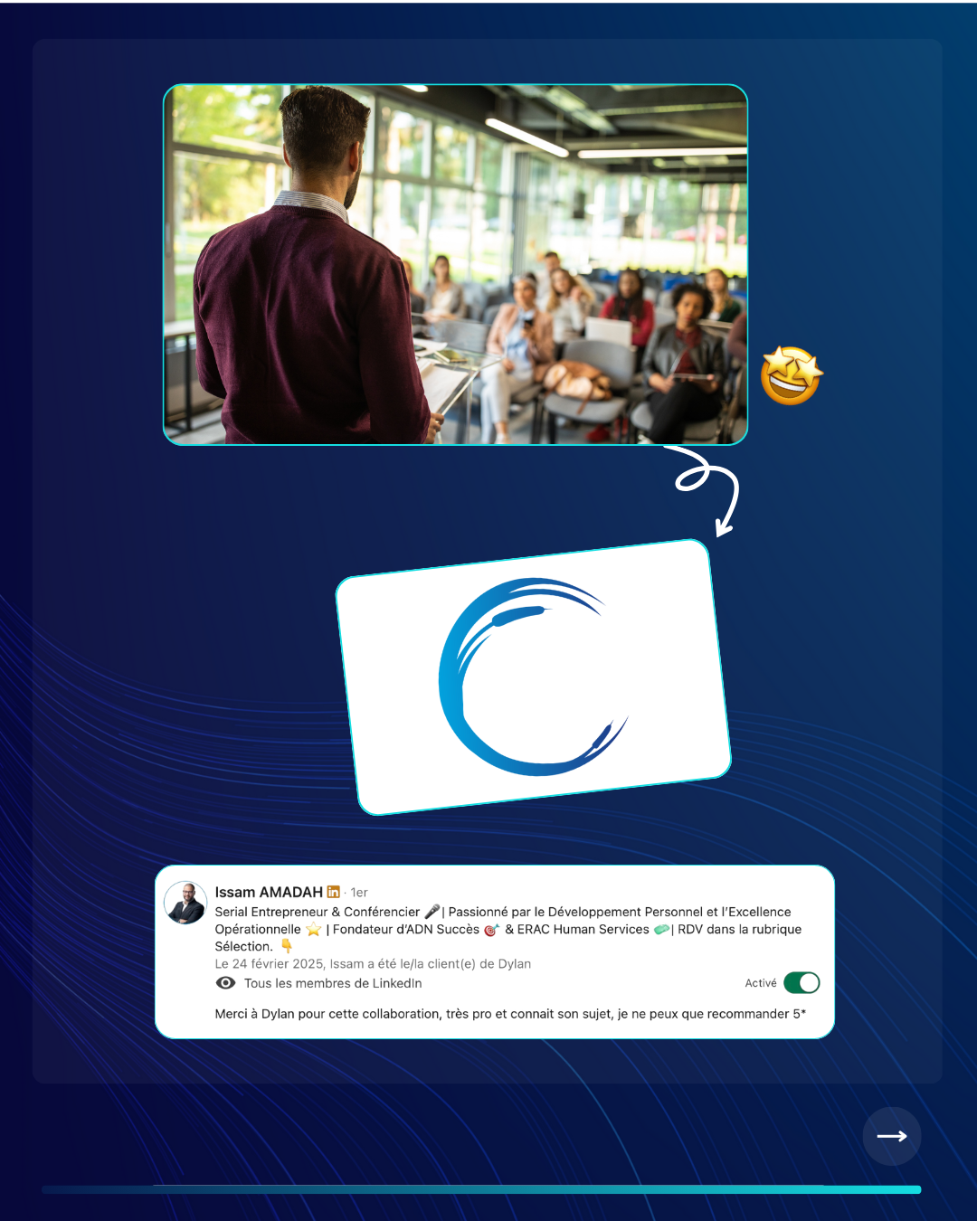 ⭐ + de 50 clients accompagnés sur LinkedIn en 2025 🔥 Optimisation de profils 🚀 Création de contenus & Acquisition de leads
