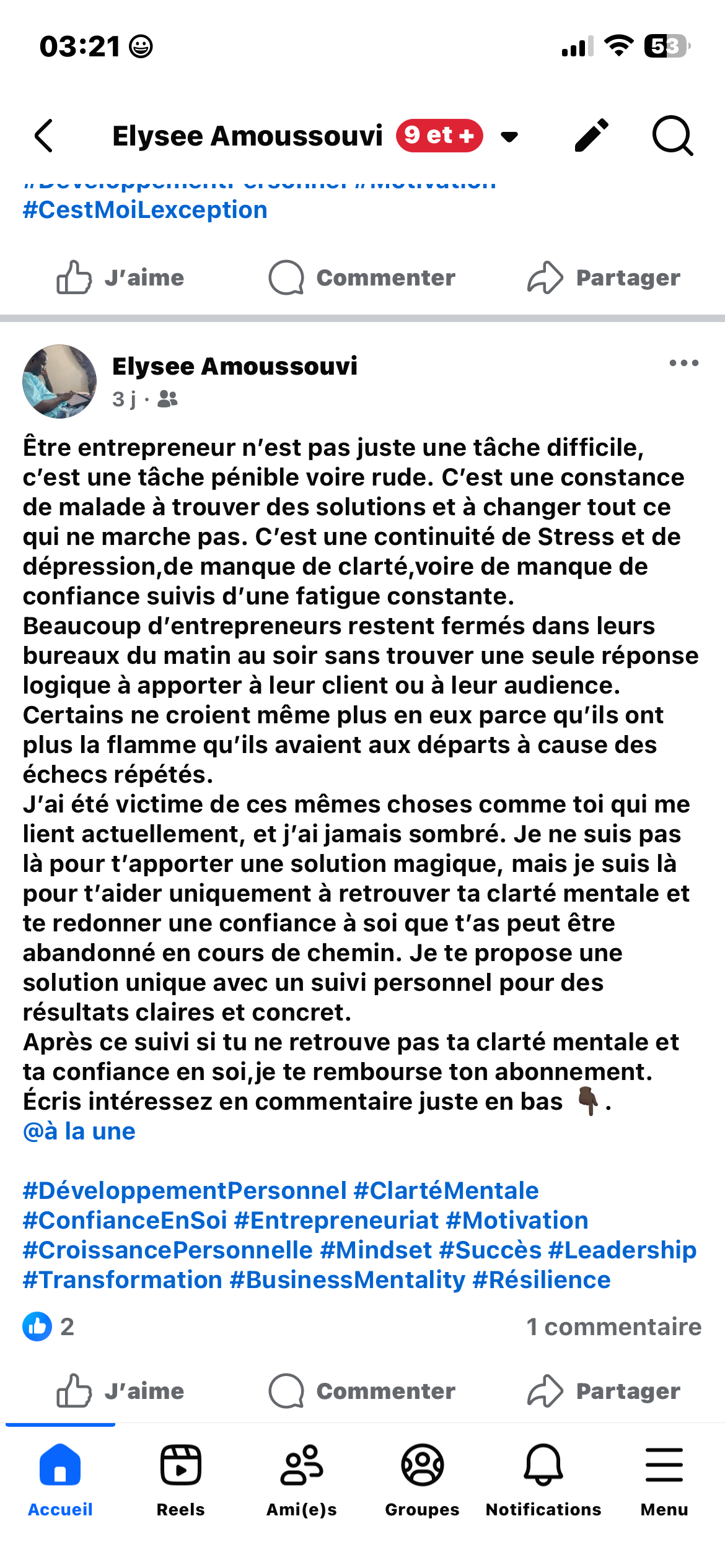 Bonjour et bienvenue ici 👋🏿 Moi c’est Elysée, Copywriter IA & Mentor en Performance Mentale pour entrepreneurs.