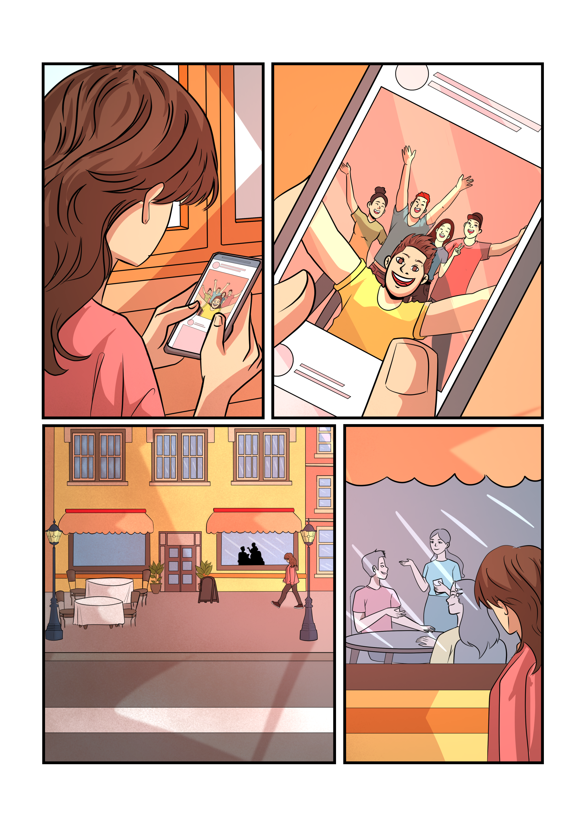 ✨ Ma mission ? Soulager les entreprises et marketeurs qui peinent à trouver des illustrations libres de droit en concevant pour eux des visuels uniques et inédits. Mais aussi, j’aspire à donner vie à des récits plus personnels, emplis d’amour, d’amitié, de beaux souvenirs et de sincérité. ✍ Bande dessinée, affiche, flyer ; sur 1 page ou même 30 : la BD se décline sous toutes les formes !
