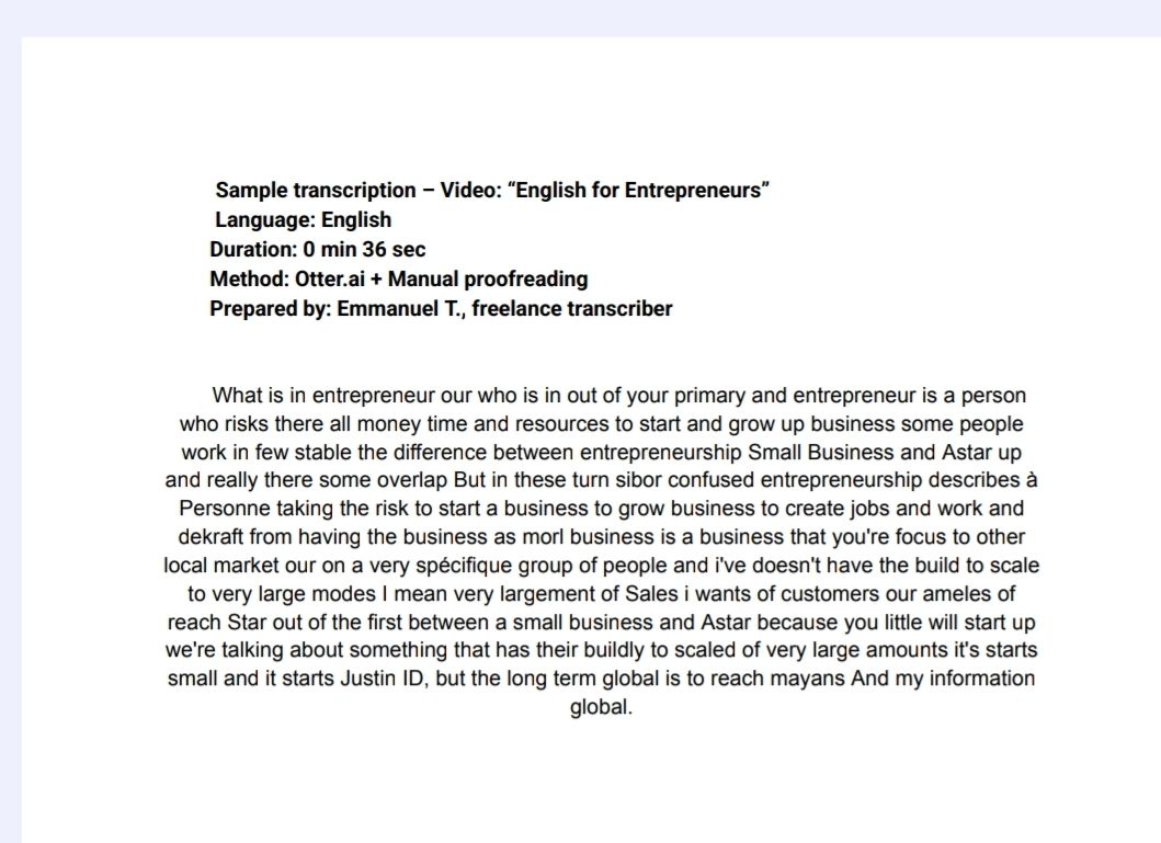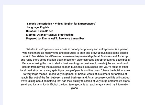 Je vais transcrire vos fichiers audio ou vidéo (FR / EN) avec précision et mise en page professionne
