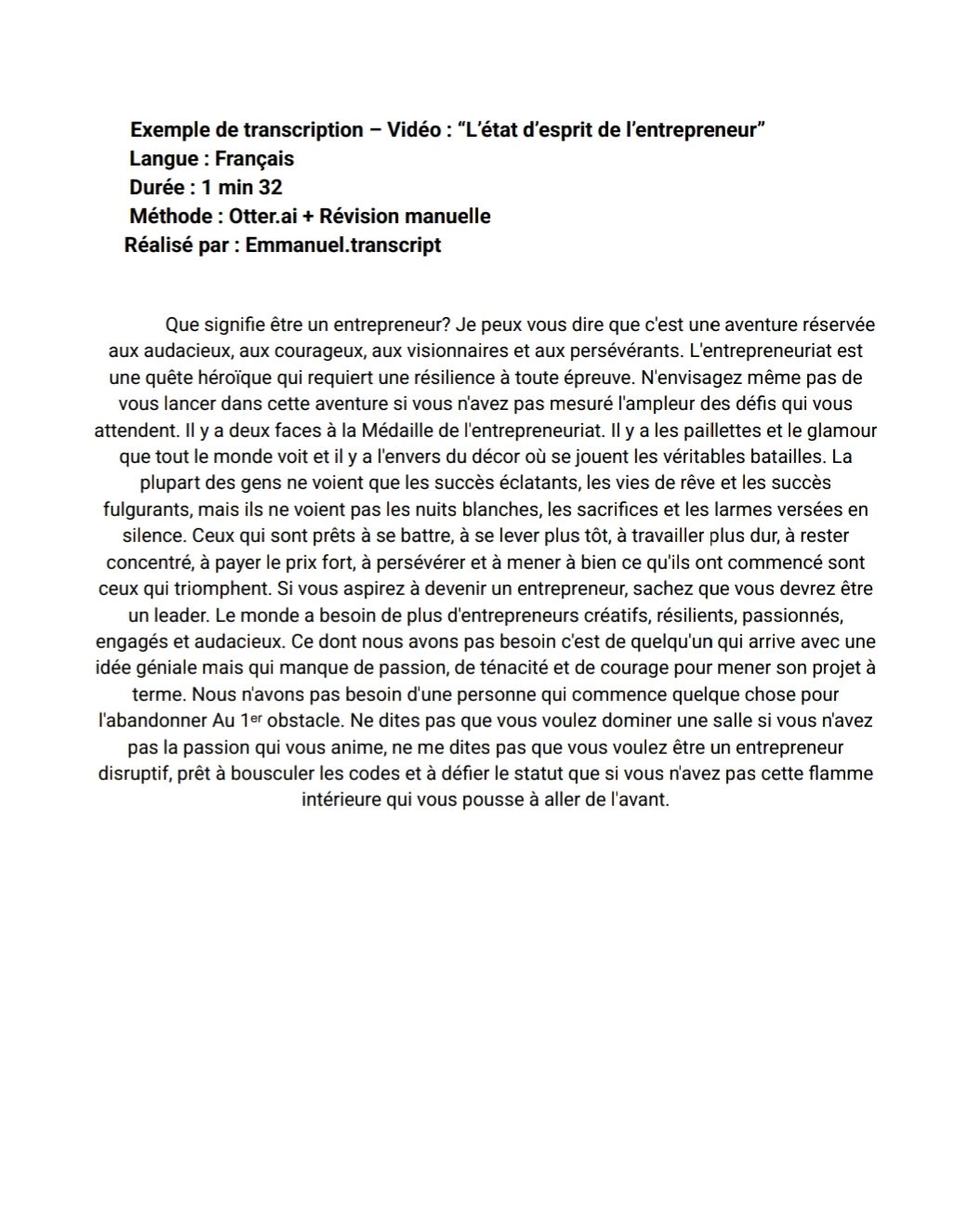 “Je suis Emmanuel, transcripteur freelance bilingue français / anglais. Je transforme vos fichiers audio ou vidéo en textes clairs, fidèles et professionnels.