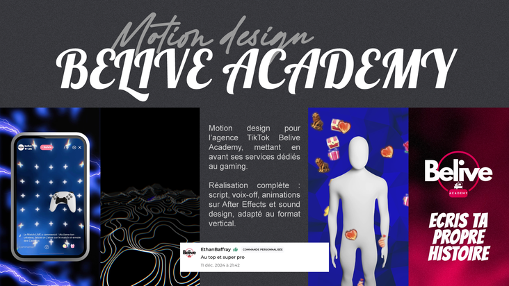 Je crée des vidéos professionnelles en motion design, montage vidéo et Spotify Canvas pour entreprises, agences et artistes. Approche créative et sur-mesure pour des projets variés, de TikTok à des vidéos institutionnelles.