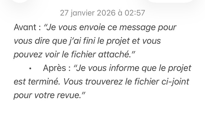 Actuellement en dernière année de licence, j’ai l’habitude de travailler sur des documents structurés et exigeants (rapports, devoirs, mémoires, textes professionnels).