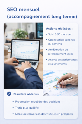 💡 Mon objectif n’est pas de vous promettre la 1ʳᵉ place en 7 jours, mais de construire un référencement solide, propre et durable, qui génère du trafic qualifié et de vrais résultats business.