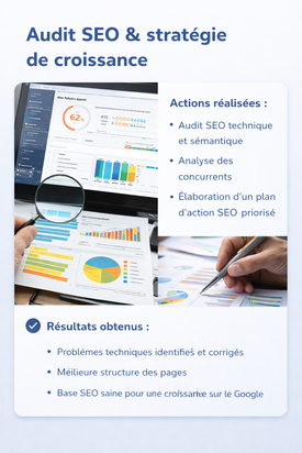Je vais auditer votre site et vous fournir un plan SEO clair pour améliorer votre référencement Google