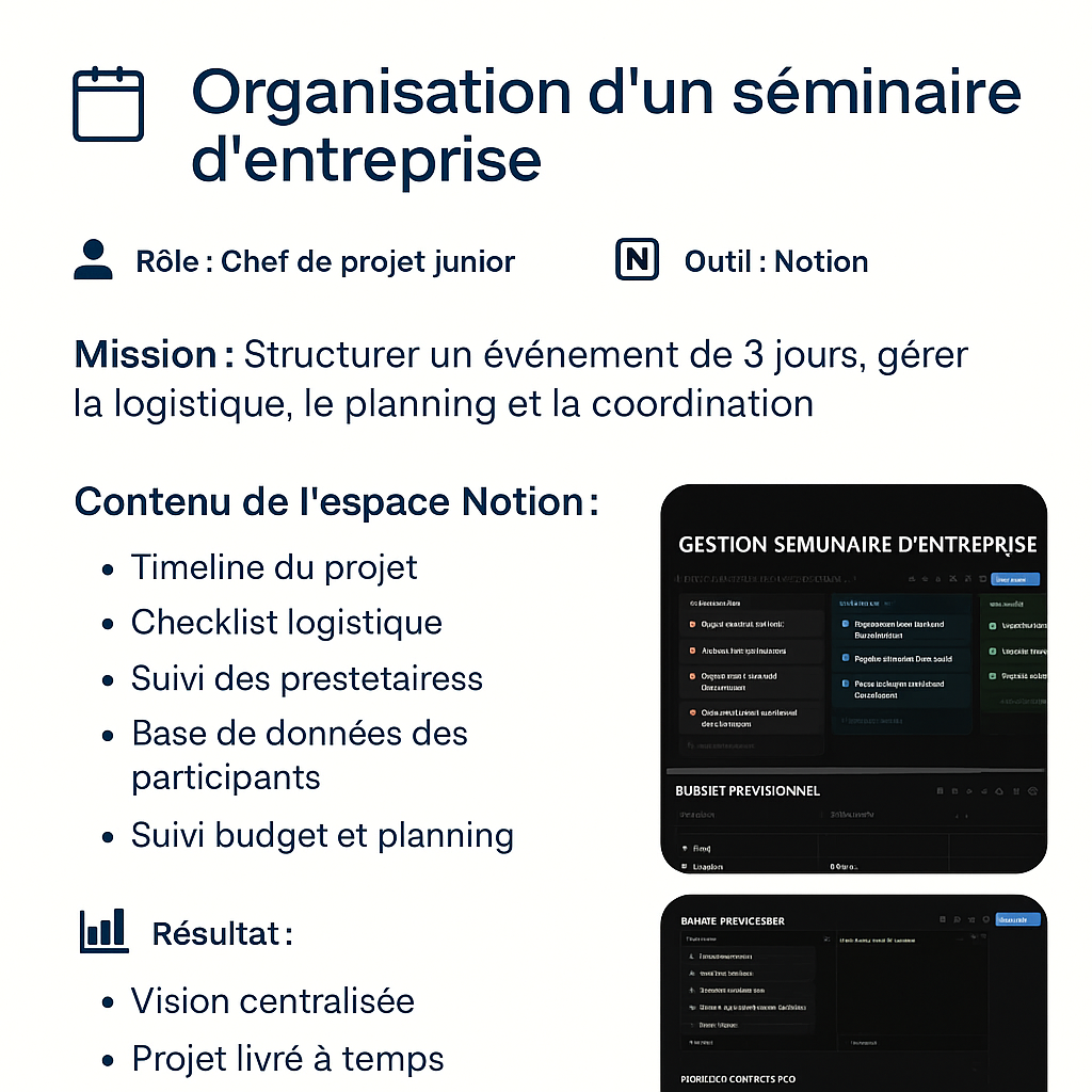 ✔️ Maîtrise des outils : Notion, ClickUp, Trello, Slack, Excel, CRM