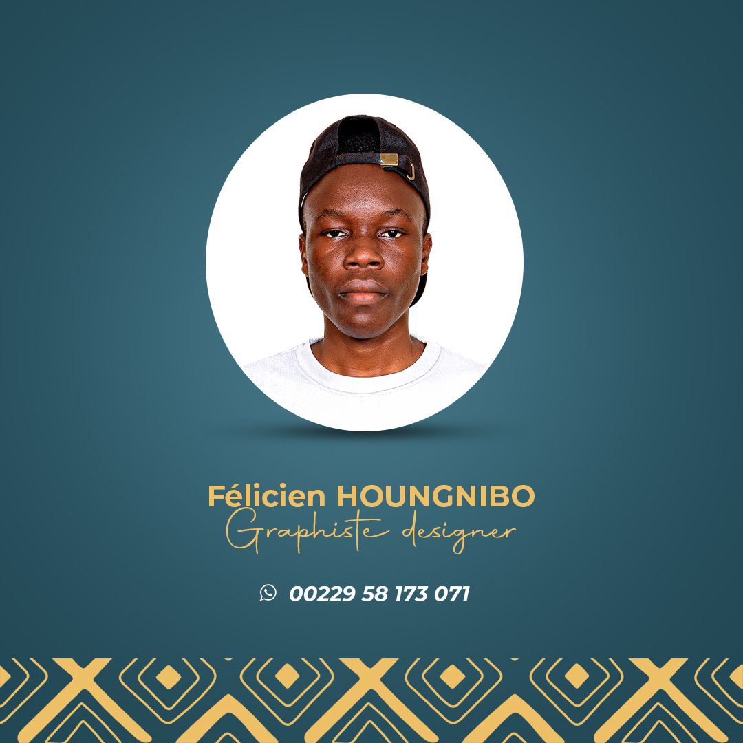 Bonjour je suis Félicien HOUNGNIBO spécialiste en création de logo, d'identité visuelle, de la création d'affiche professionnelle captivante, de branding, packaging, de shooting photo produit assisté par IA afin de vous permettre de sortir de l'ombre et de raconter votre histoire. Après 3 ans d'expérience, j'ai eu à travailler avec des agences sur différents projets, j'ai eu à accompagner plusieurs PME locales à sortir de l'ombre et maximiser leurs ventes. Je met à votre disposition mes compétences acquises depuis 3 ans afin de vous sortir de l'ombre et vous réaffirmer.