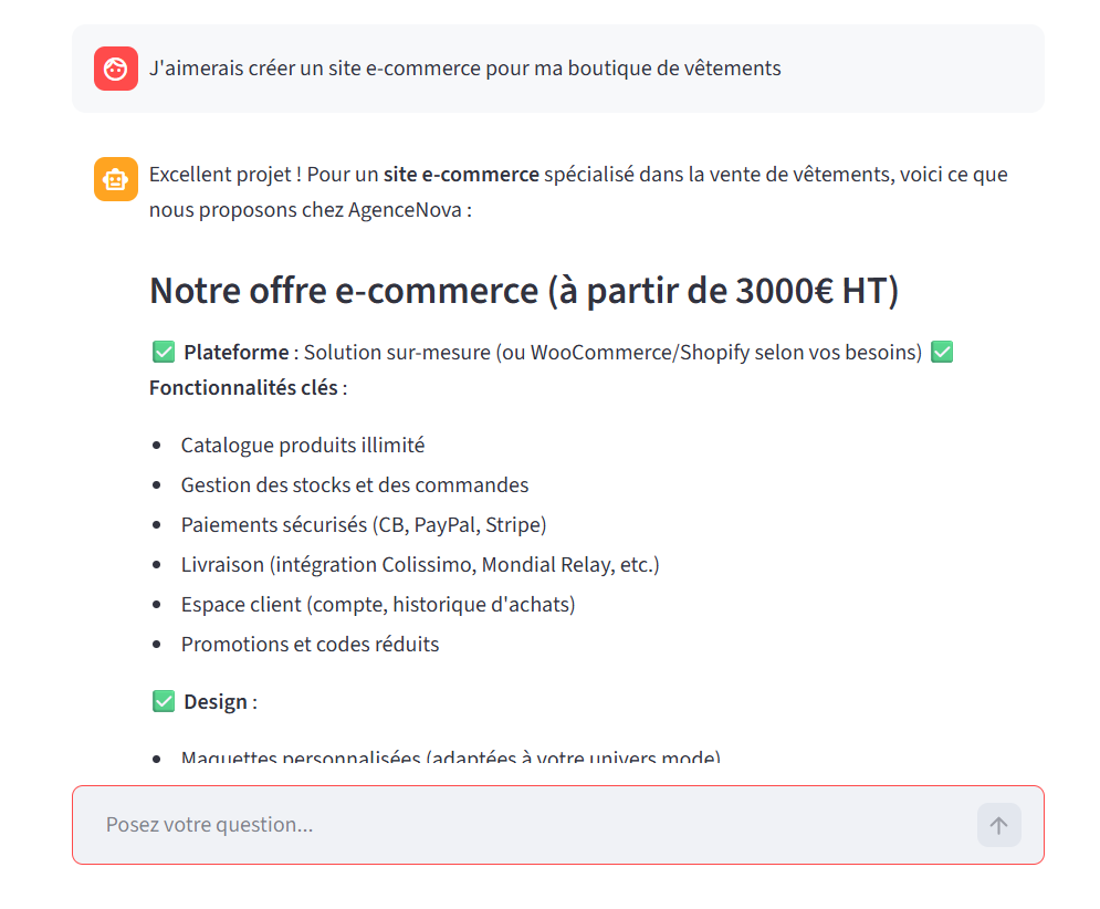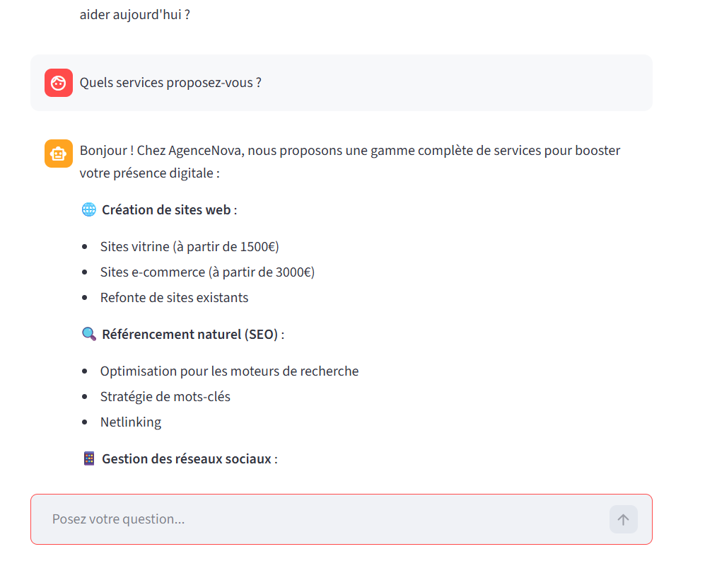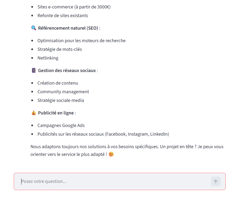 - Développement de chatbots