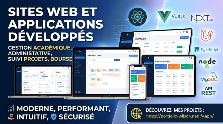 - Frontend : React.js, Vue.js, NextJS (optimisation SEO).