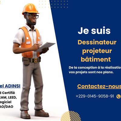 Étude et conception des plans en 2D pour tous projets. Réalisation de vos dossiers de "Permis de Construire" Réalisation de vos dossiers de "Déclaration Préalable" Aménagement et décoration int./ext. en 3D de votre projet. _Je suis Lionel ADINSI, un architecte animé par la passion du design et étroitement avec mes clients, je m'efforce de donner vie à leurs rêves, idées de croquis et de créer des lieux où les gens se sentent vraiment chez eux.